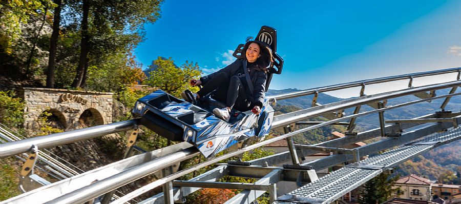 It opened in spring of 2025 and has already garnered large crowds and lots of attention, because unlike the loftier attraction -the Volo dell'Angelo zip line- this one is on the ground, perfect for those with a fear of heights but who still want a thrill ride. It's like a summer bobsled ride. It curves and snakes, enters a tunnel and ends with a final loop.