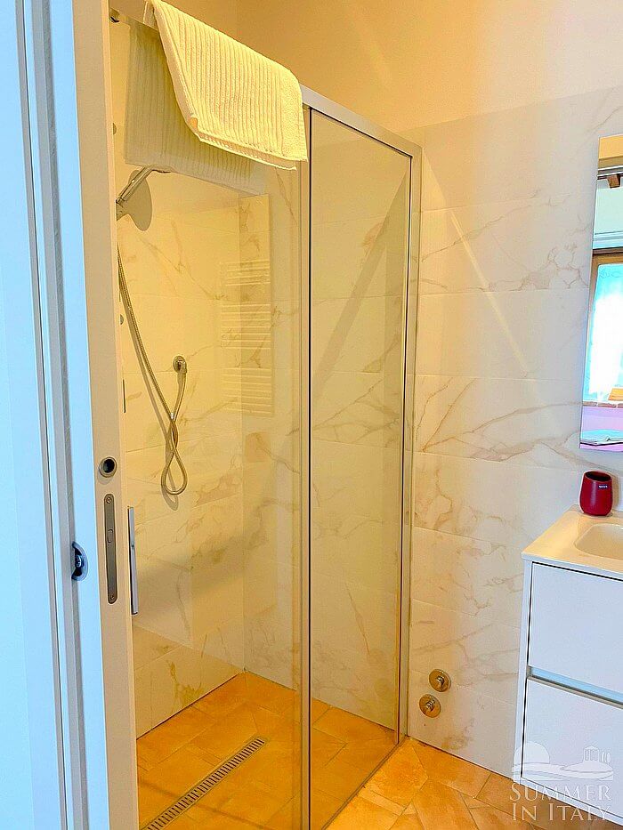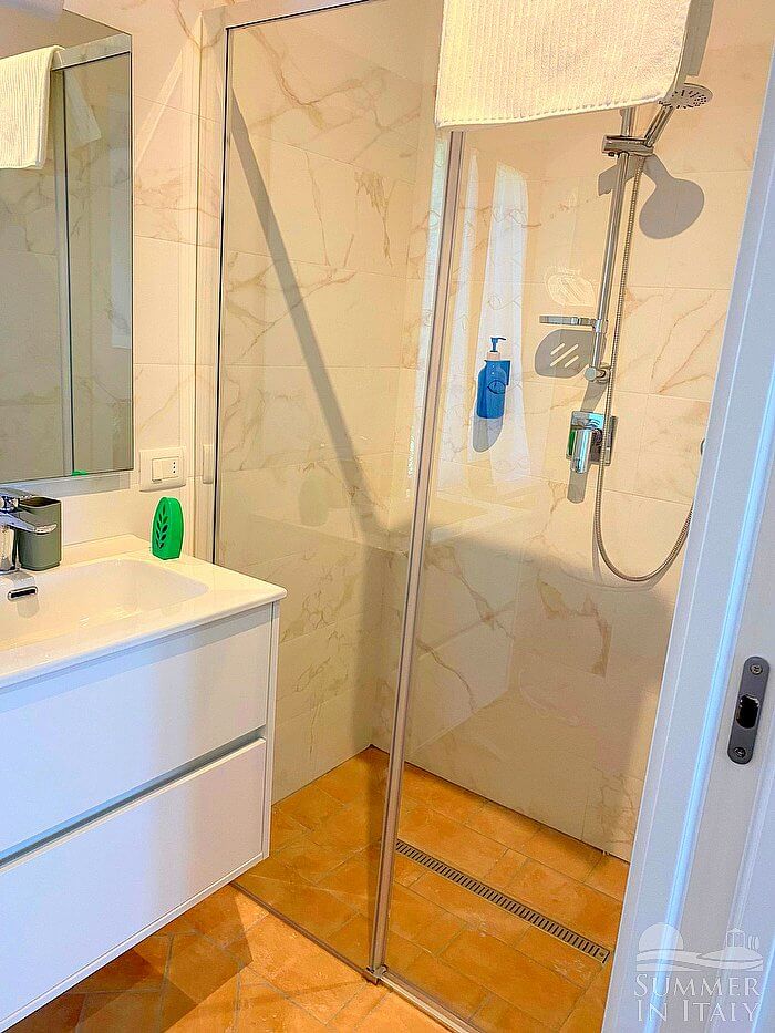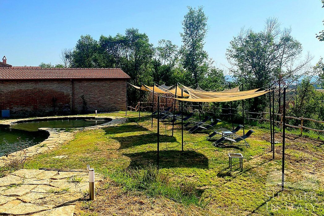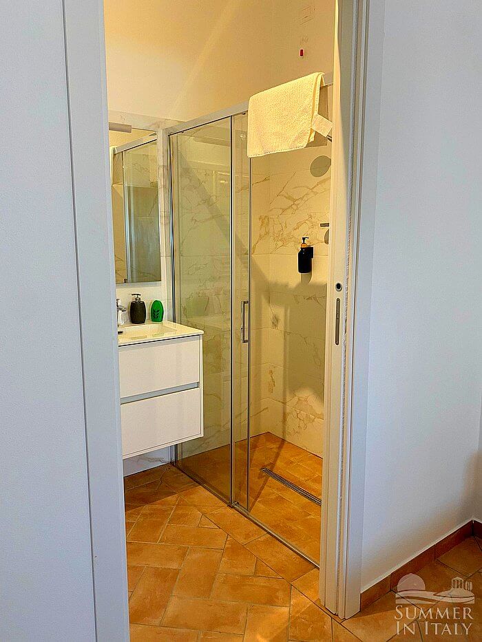 The terrace is 6 square meters (65 square feet) large. You will reach it from the garden going up an external stairway which consists of approximately 11 steps. It is equipped with a table, chairs and a sun umbrella. From the terrace you will enjoy a charming view of the greenery and of the swimming pool.