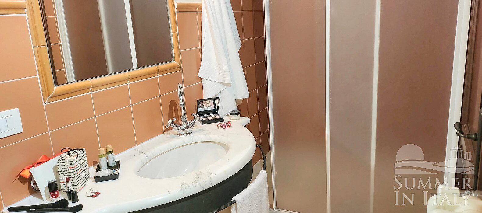 The swimming pool is 12 meters (39 feet) large by 20 meters (65 feet) long, 1.45 meters (4.8 feet) deep. The area is equipped with sun umbrellas, sun loungers and an external shower. From the swimming pool you will enjoy a spellbinding view of the greenery. You will share the pool with guests staying at 13 other apartments. The swimming pool is open from the beginning of May until the end of September.
