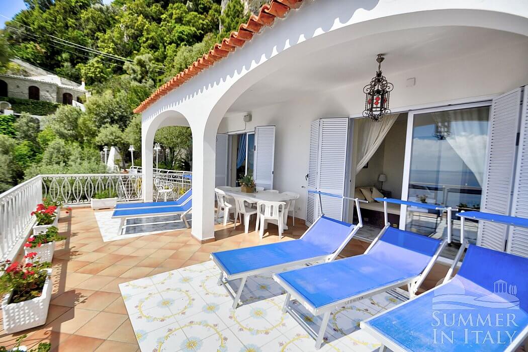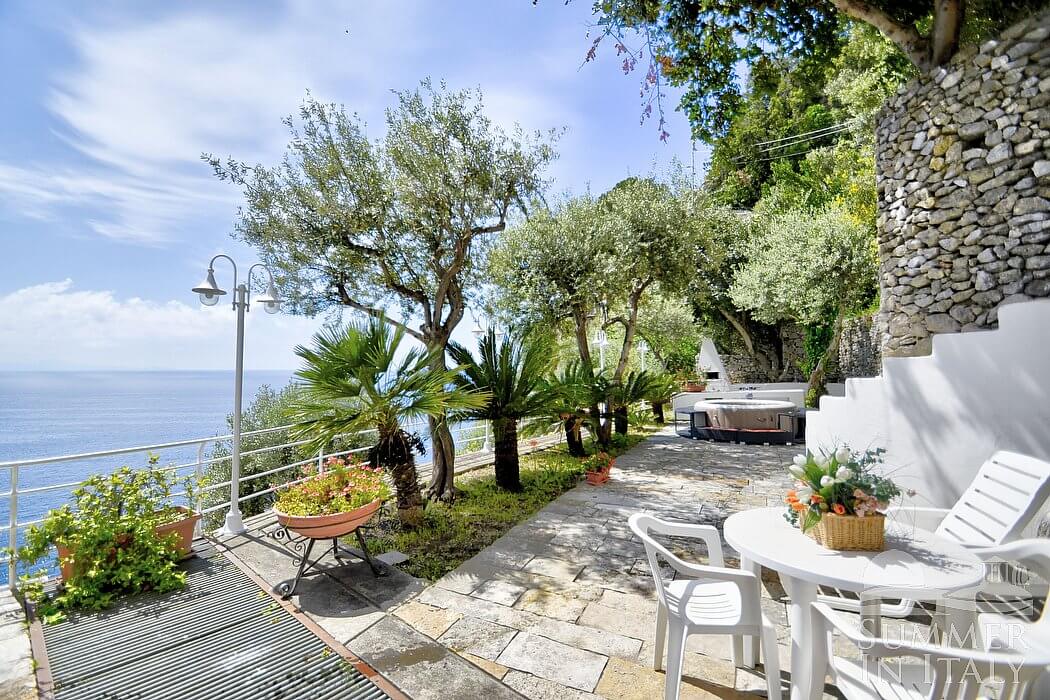 The villa is on the edge of Praiano, between Positano and Amalfi, just on the famous beach of La Praia. You could reach the seaside from a flight of stairs that starts from the house and leads you directly to the beach.