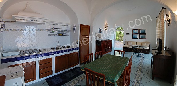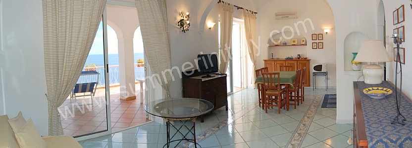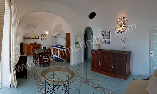 Appartamento Annarosa B is a pleasant and spacious apartment that is part of a villa built on the sloping cliff in front of the sea. It sleeps six people. From Appartamento Annarosa B you will enjoy a splendid view of the sea and of the gulf of Salerno far in the horizon. Appartamento Annarosa B is 90 square meters (970 square feet). It features a nice private terrace with a view of the sea, air conditioning (please read description below to check in which rooms the units are installed), winter heating and WI-FI Internet access.