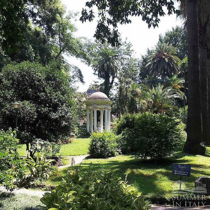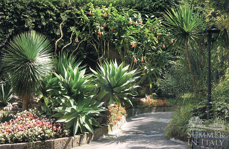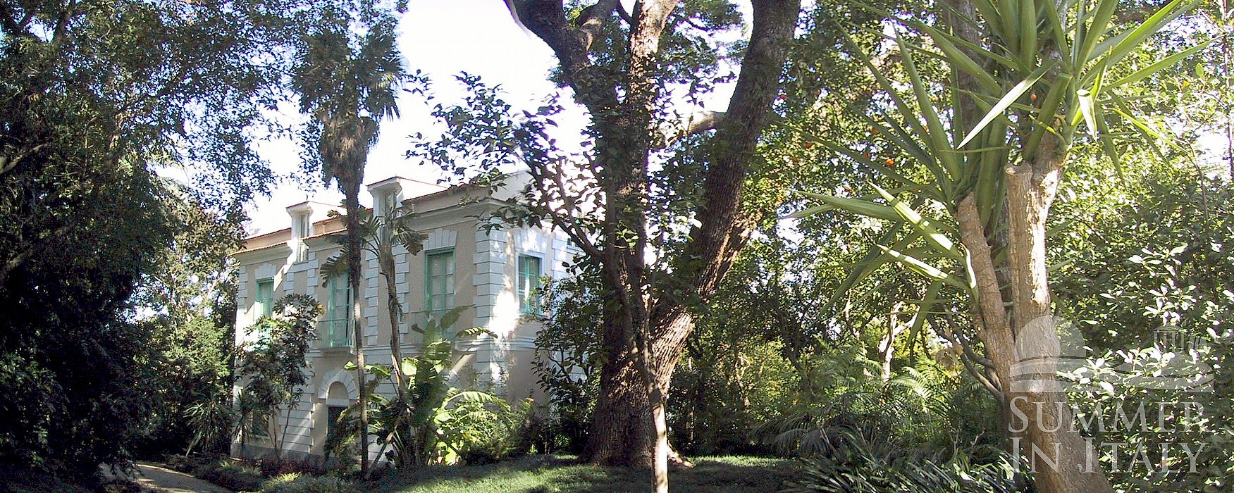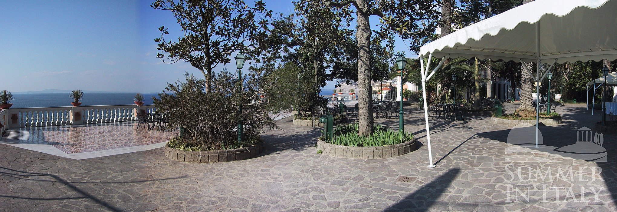 Imagine a huge botanic garden of 27.000 square meters (290.000 square feet), with well-kept pathways that run through it, filled with tall trees and flowers and with a huge terrace placed directly above the sea. From this terrace you will enjoy a splendid view of the gulf of Naples and of the unmistakable cone of Mount Vesuvius.