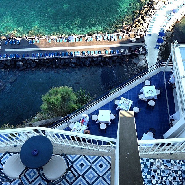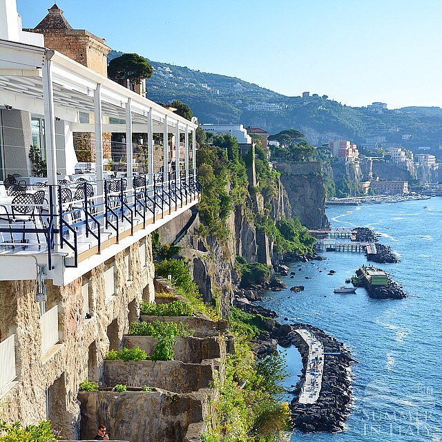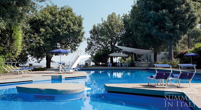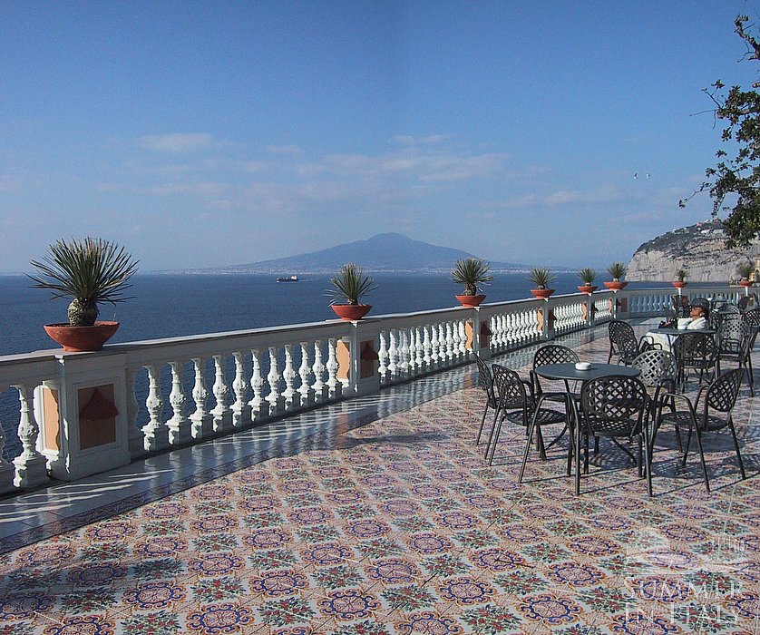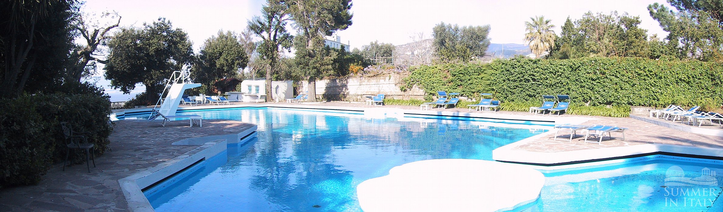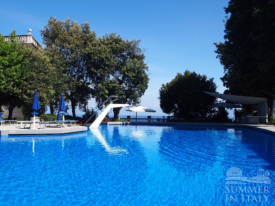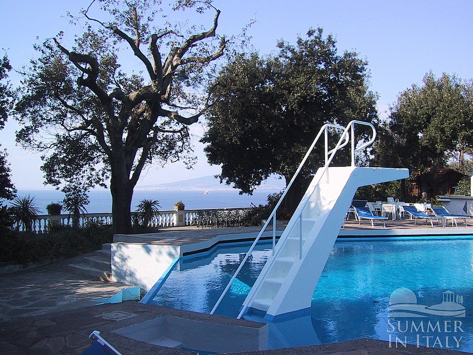 At the two ends of the terrace are two masterpieces of architecture: on one side, the ancient Bourbon building, on the other side, a modern luxury hotel designed by famous Italian architect Giò Ponti in the sixties. There is enough to start dreaming... you will spend your vacation surrounded by beautiful things, collected, over time, all in this space by people who have loved the natural beauty of these places, and who have been able to exalt it. You will be able to stroll along the fresh pathways of the garden during the hot hours of the day, enjoy the services of a luxury hotel and relax by the beautiful swimming pool, go to the sea, if you want, always with the sight of one of the world's most beautiful seascapes in front of you. And when the sun sets, on the terrace by the sea a romantic piano bar opens: you will be able to end your day with the show of the light of the gulf of Naples, sitting at the bar and listening to the sweet words of "Torna a Surriento".