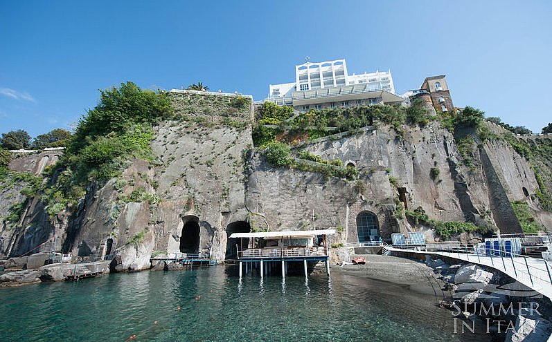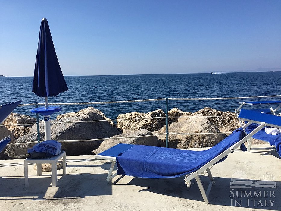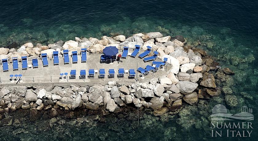 If you would rather like to swim in the sea, you will be able to enter the beach facilities paying a daily extra directly at the reception of the villa. The beach facilities, located at the foot of the cliff, are very characteristic. They can be reached either with an elevator or descending an ancient stairway cut into the cliff itself.