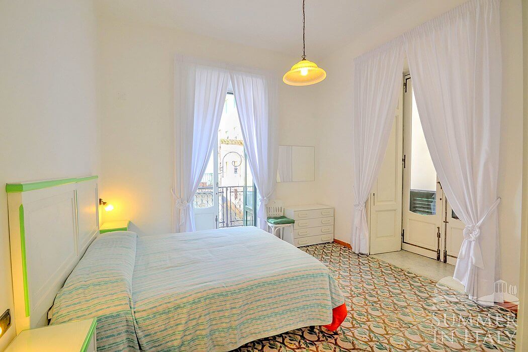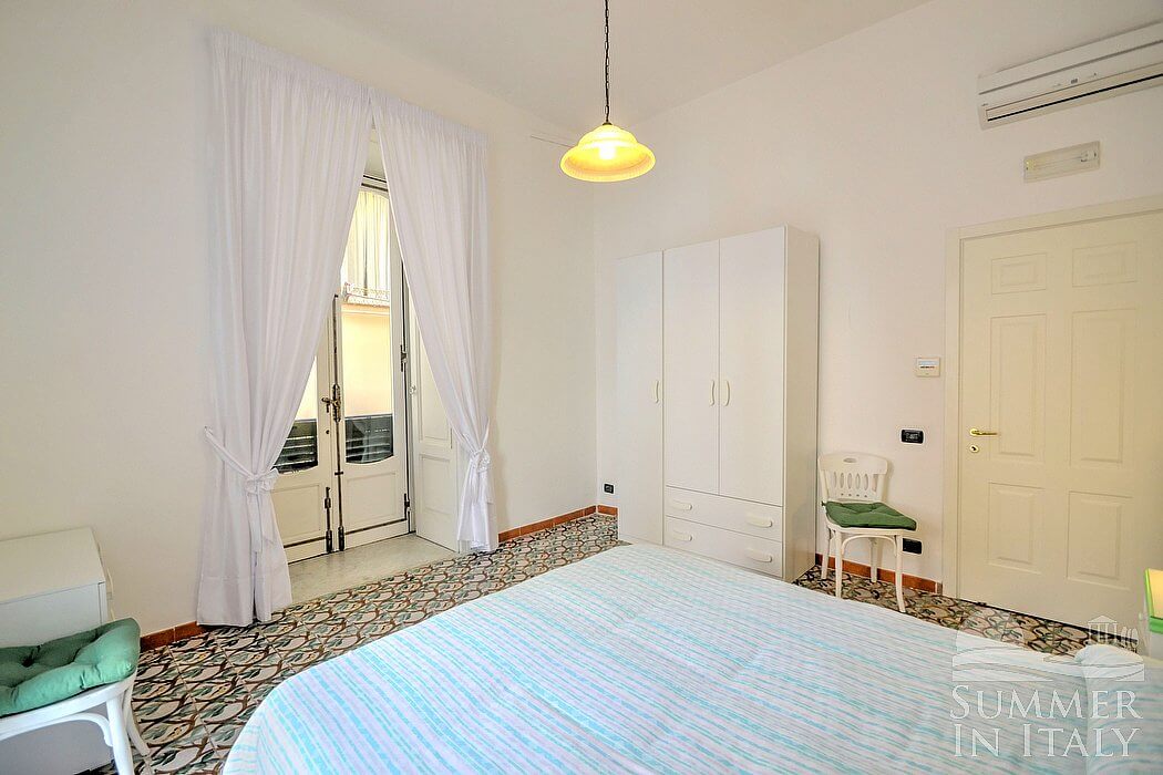 You will be able to enter the bedroom from the living room. The bedroom has a matrimonial bed (160 cm/62 inches, wider than a queen-size bed), that can be split into twins if requested (please contact our staff in advance to make arrangements). From the bedroom you will be able to enter a small balcony through two French doors. The bedroom is equipped with an air conditioning/heating unit.