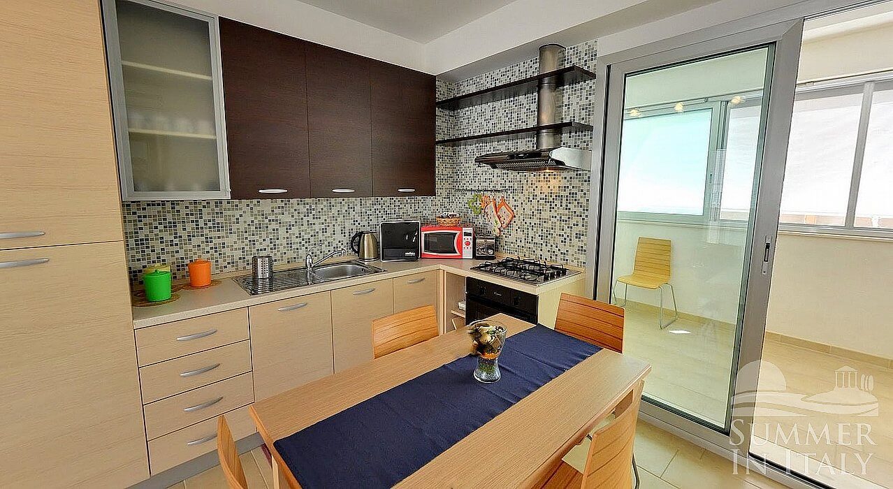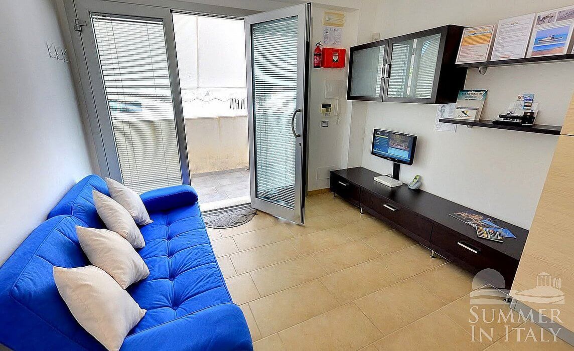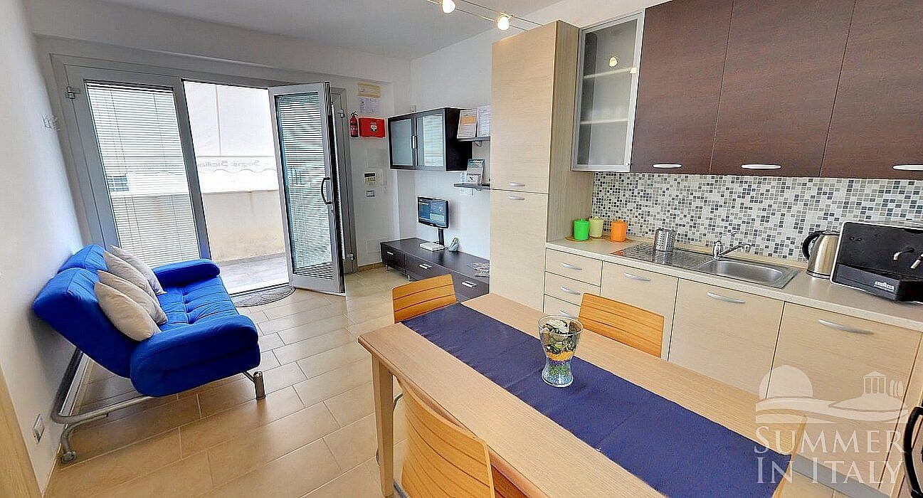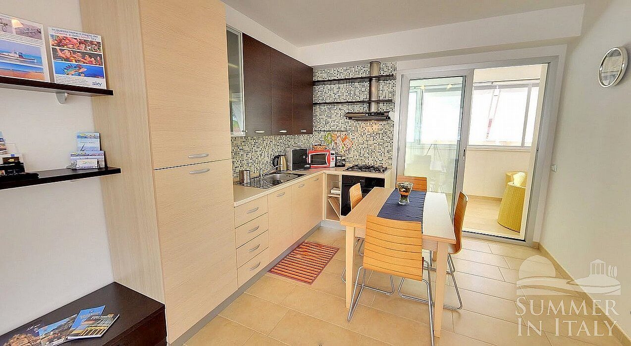 Appartamento Odisseo D is a cozy apartment situated at a few steps from a sandy beach. It sleeps four people. From Appartamento Odisseo D you will have a partial view of the sea and of the other buildings. Appartamento Odisseo D is 75 square meters (810 square feet). It features a private terrace, air conditioning (please read description below to check in which rooms the units are installed), winter heating and WI-FI Internet access.