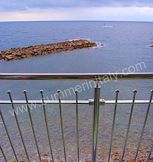From the property you will have a direct access to the sea and to a public pebble beach. You will reach it from the garden along a stairway which consists of approximately 22 steps. The area is equipped with sun umbrellas and sun loungers. The access to the sea is shared with the other guests staying at the complex.