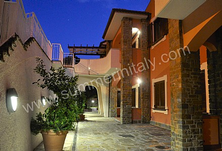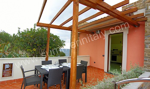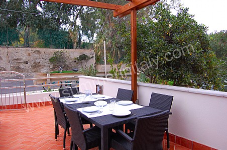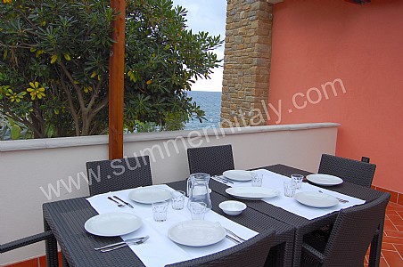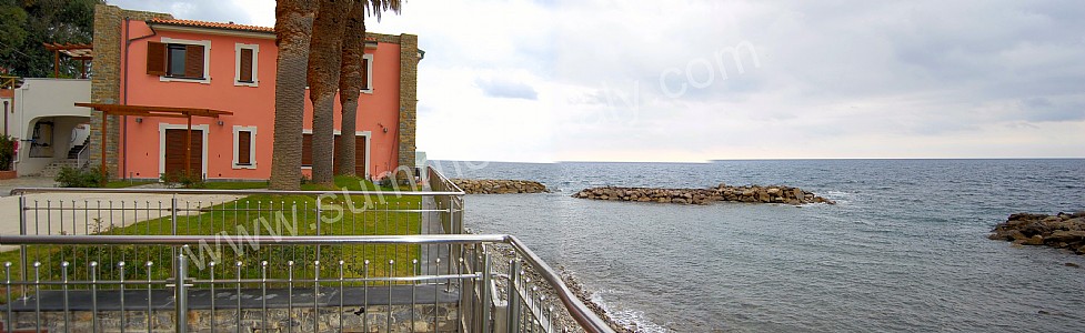 The complex is composed by two villas built right on the sea. The villas are divided into 26 small holiday apartments. Between the villas you will find a shared garden equipped with tables and chairs. The staircase that leads to the beach is in the garden, too. It's a pebble beach. If you prefer soft sandy beaches, you can find a golden one, perfect for your kids as well, at about 1.5 km (1 mile) from the property.