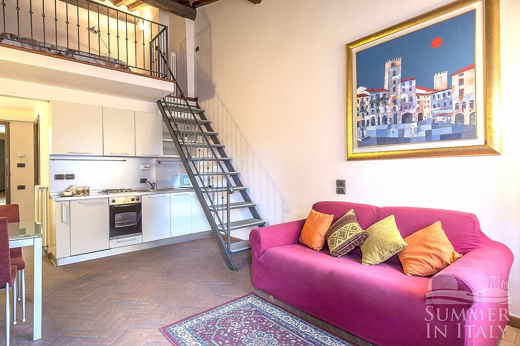 Appartamento Vasaria A is located on the third floor of a three story building. You will reach it from the main entrance of the building going up approximately 60 stairway steps.