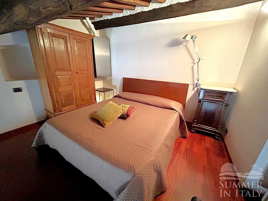 In the living room you will find an open mezzanine level, without door. You will be able to access it climbing 12 steps. The mezzanine has a matrimonial bed (160 cm/63 inches, wider than a queen-size bed). The ceiling is sloped, has characteristic exposed wood beams and terracotta tiles and has an height of 2 meters (6.6 feet) at its lowest point.