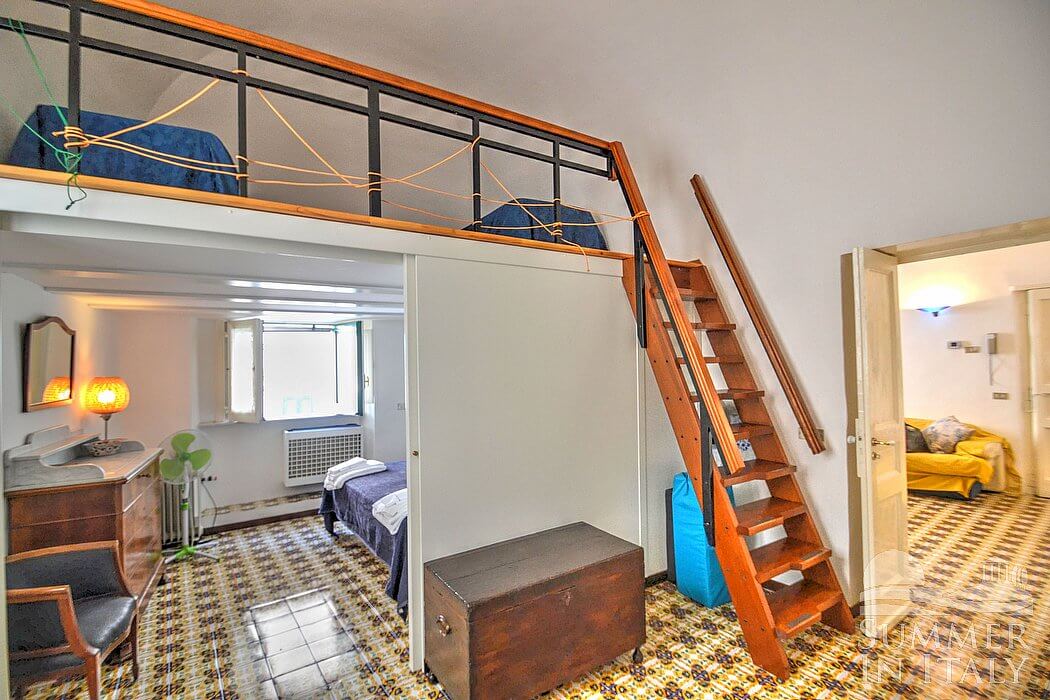 It is in a quiet place, inset as it is among the alleys and stairways of the ancient burg. The place is comfortable as well, since with a short walk you will be able to reach the main road or the sea.