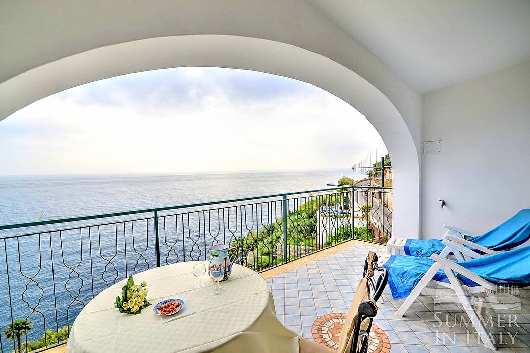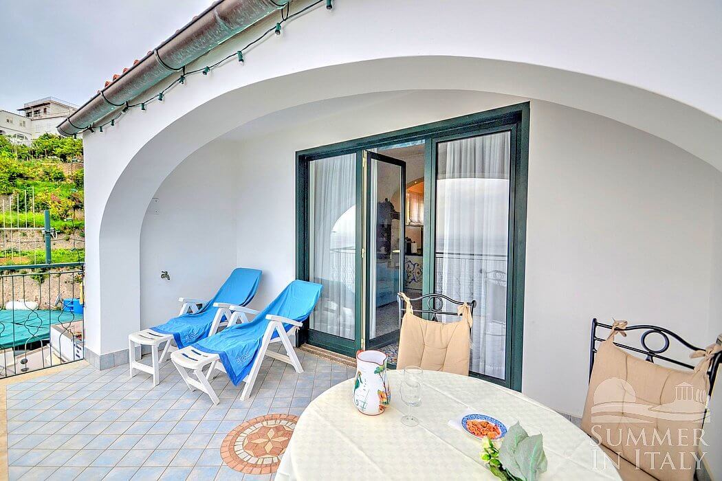 Casa Alba di Praiano is a bright and sunny apartment which faces the sun and the sea. It sleeps four people. From Casa Alba di Praiano you will enjoy an enchanting view of the sea and of the coast of Amalfi. Casa Alba di Praiano is 70 square meters (750 square feet). It features a spacious private terrace with a view of the sea, air conditioning (please read description below to check in which rooms the units are installed) and winter heating.