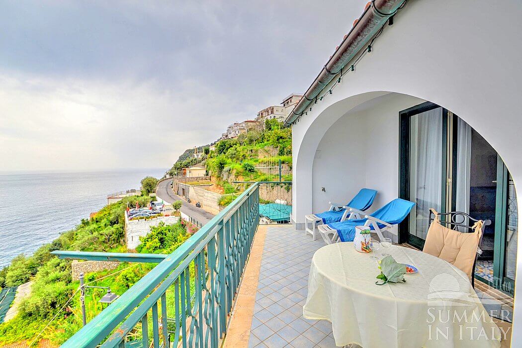 Casa Alba di Praiano is located on the third floor of an ancient building. You will reach it from the street level going up four flights of stairs (approximately 60 steps). Because of the street below, at times some traffic noise can be heard.
