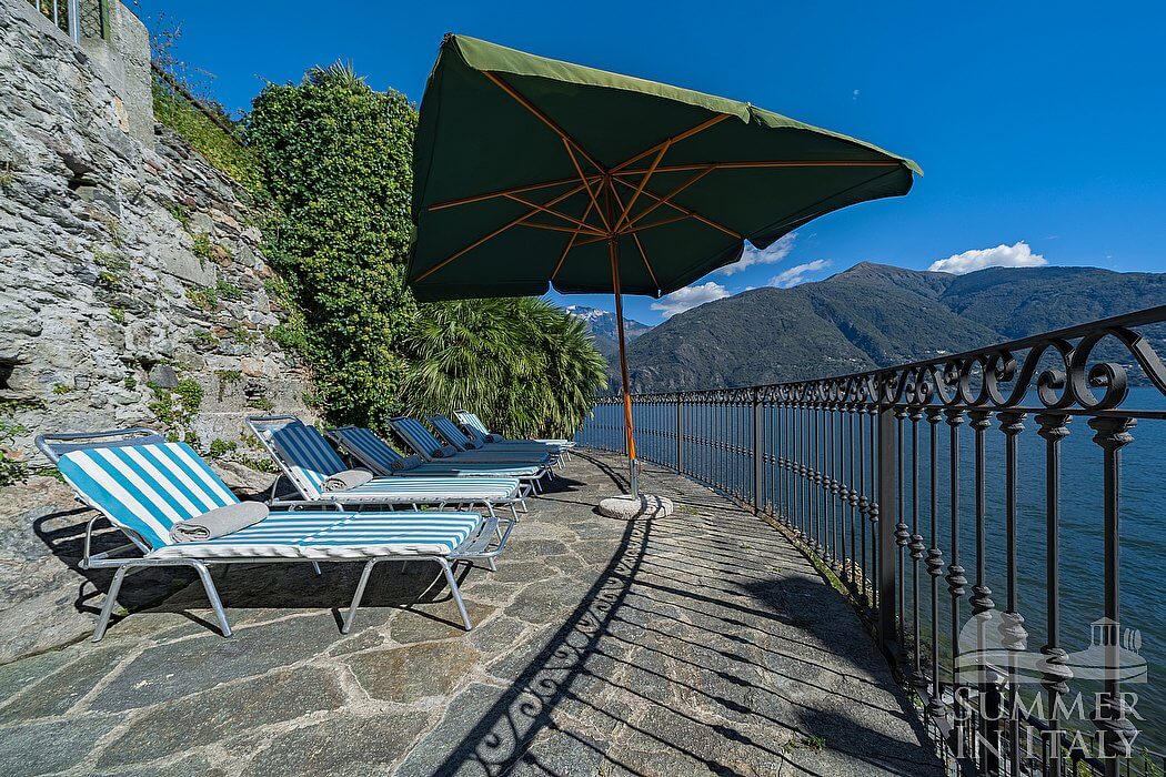 The second terrace is 20 square meters (215 square feet) large. You will reach it from the first terrace going up approximately eight stairway steps. It is equipped with chairs, a sun umbrella and sun loungers. From the terrace you will enjoy a splendid view of the lake and of the mountains.