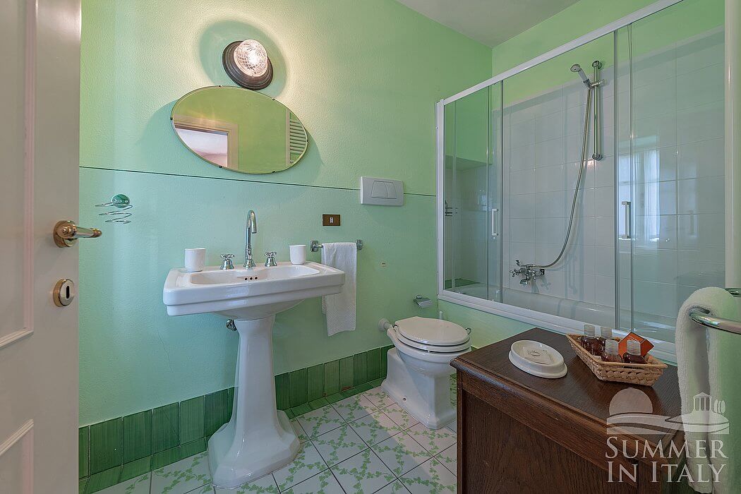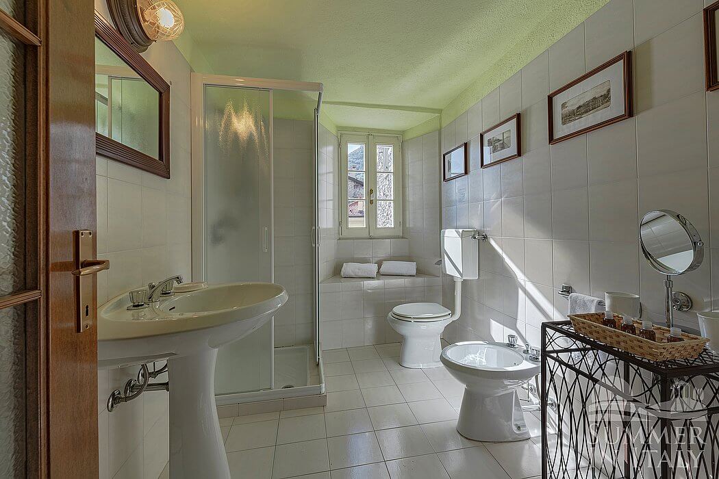 You will be able to enter the third bedroom from the kitchen. The bedroom has a matrimonial bed (160 cm/63 inches, wider than a queen-size bed). In this room you will find a satellite television (local channels). From the bedroom you will be able to enter the external stairway with a view of the lake and of the mountains through a French door. This bedroom has an en-suite bathroom, equipped with a washbasin, a toilet, a bathtub with shower wand and a hairdryer.