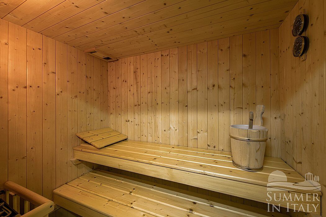 You will be able to enter the wellness room from the third terrace through an external access. In the wellness room you will find a sauna. Here you will also find a washing machine and a clothes dryer.