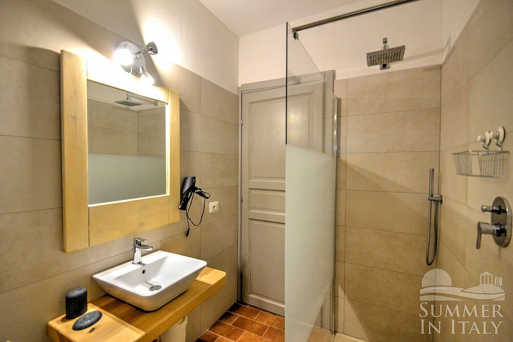 The swimming pool is 7.5 meters (25 feet) large by 15 meters (50 feet) long. The area is equipped with sun umbrellas, sun loungers, two gazebos and an external shower. From the swimming pool you will enjoy a spellbinding view of the garden. You will share the pool with the other guests staying at the complex. The swimming pool is open from the beginning of May until mid-October.