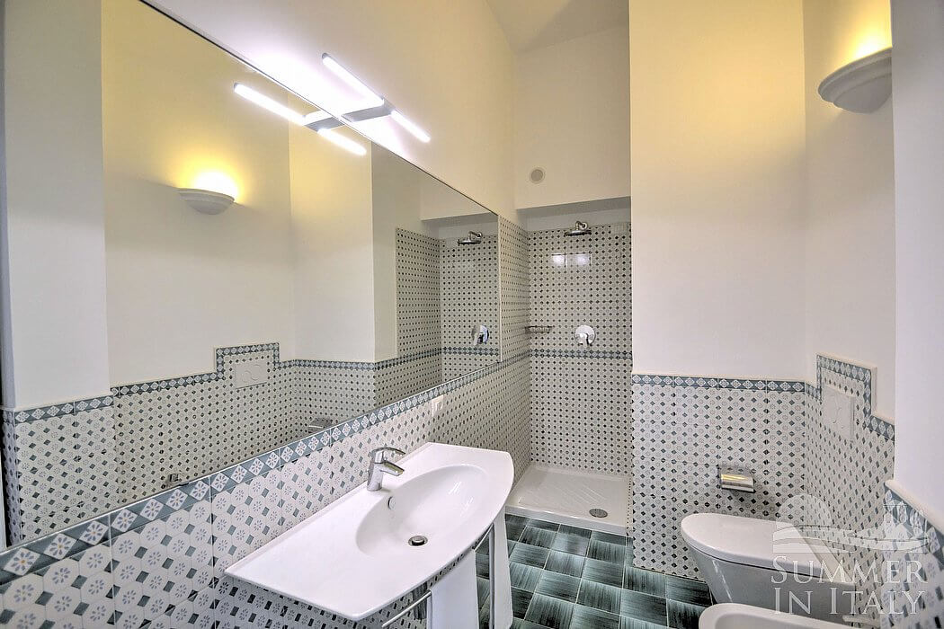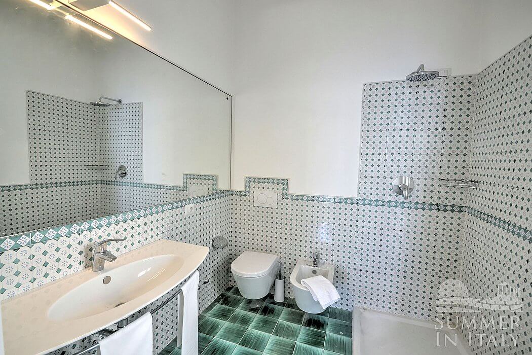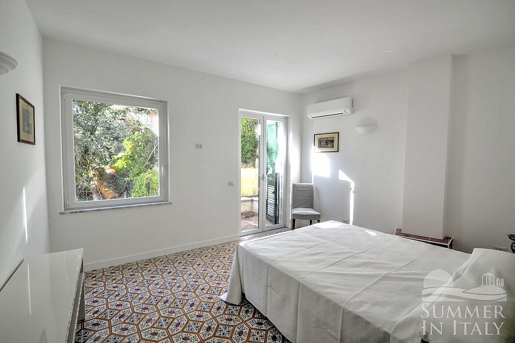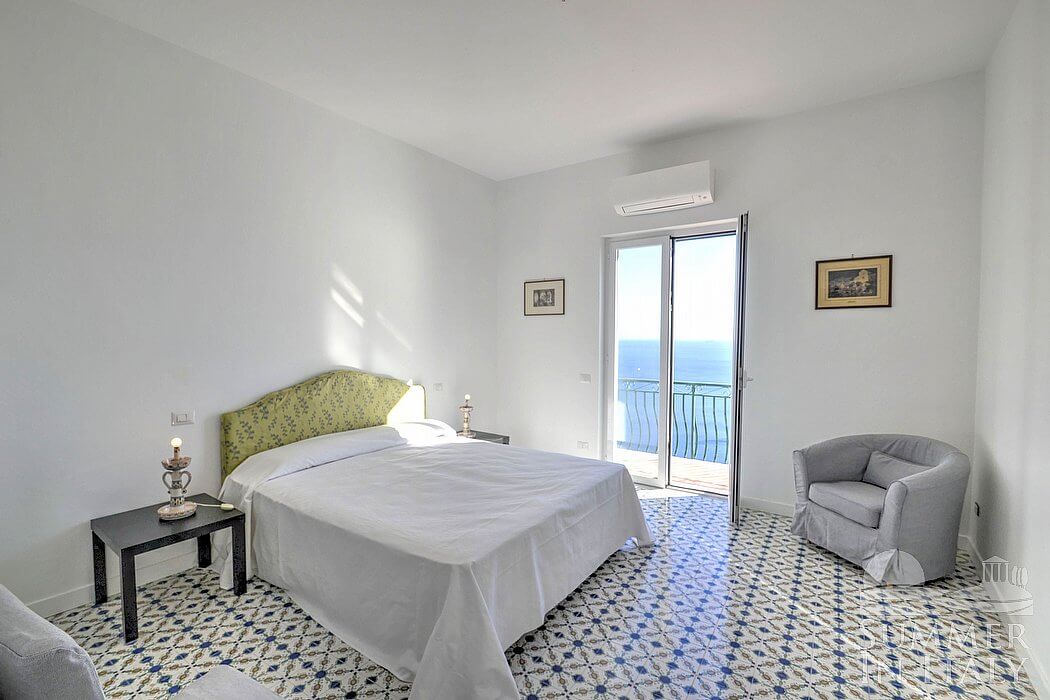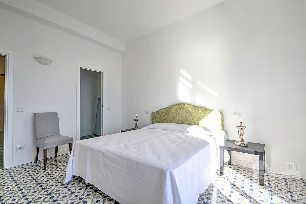 You will be able to enter the first bedroom through a corridor. The bedroom has a matrimonial bed (160 cm/62 inches, wider than a queen-size bed). In this room you will find a satellite television (local channels). From the bedroom you will be able to enter the terrace with a view of the sea and of the coast of Amalfi through a French door. The bedroom is equipped with an air conditioning/heating unit. This bedroom has an en-suite bathroom, equipped with a washbasin, a toilet, a fully enclosed shower and a hairdryer.
