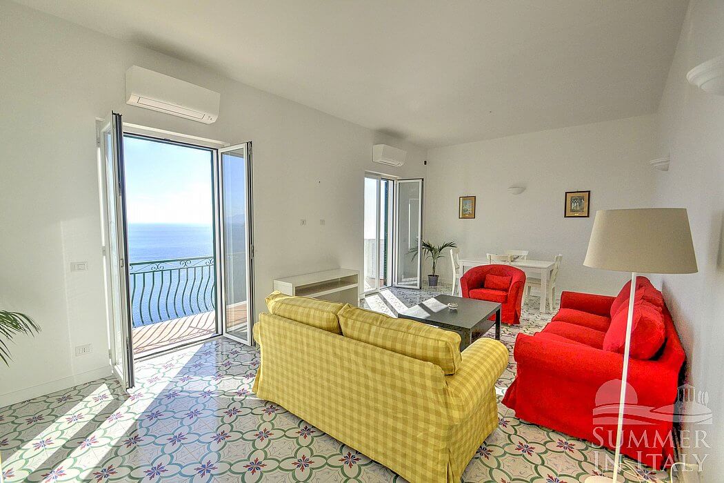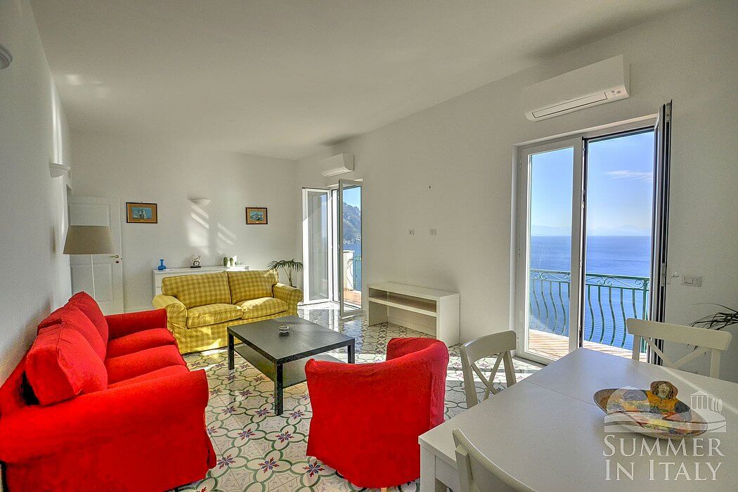Casa Annabella is a bright and sunny apartment which faces the sun and the sea. It sleeps four people. From Casa Annabella you will enjoy a wonderful view of the sea, of Amalfi and the coast of Amalfi. Casa Annabella is 100 square meters (1076 square feet). It features a panoramic private terrace with a view of the sea, air conditioning (please read description below to check in which rooms the units are installed), winter heating and WI-FI Internet access.