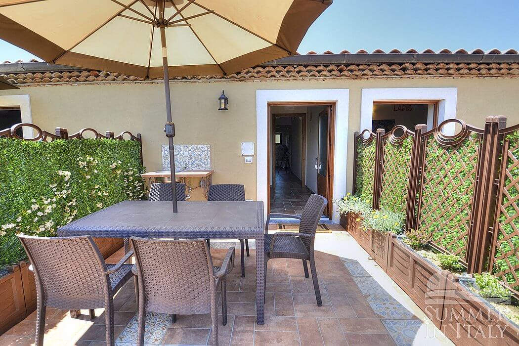 Casa Biancolilla B is a welcoming apartment situated at a short distance from the beach. It sleeps five people. From Casa Biancolilla B you will have a view of the surrounding countryside and of the other buildings. Casa Biancolilla B is 60 square meters (645 square feet). It features two private terraces, air conditioning (please read description below to check in which rooms the units are installed), winter heating and WI-FI Internet access.