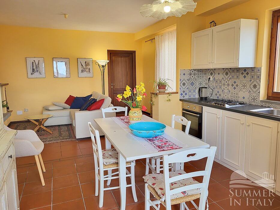 Casa Brina C is a characteristic and welcoming apartment that is part of an ancient country house made of stone. It sleeps six people. From Casa Brina C you will enjoy a spellbinding view of the valley and of the greenery. Casa Brina C is 110 square meters (1200 square feet). It features a shared swimming pool, a private garden, winter heating and WI-FI Internet access.