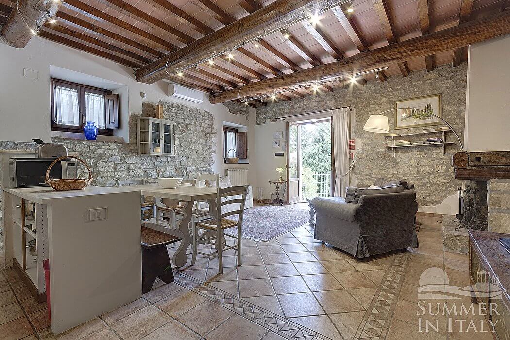 You will be roughly 1.5 km (one mile) from the center of Sieci, where you will find restaurants and shops. You will reach Casa Camomilla D from the parking area going up approximately three stairway steps.