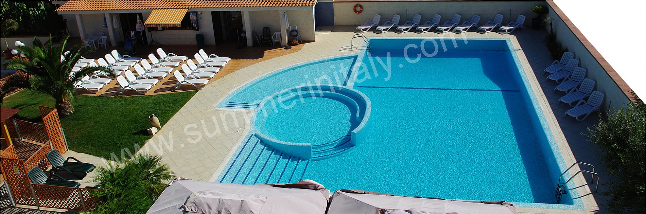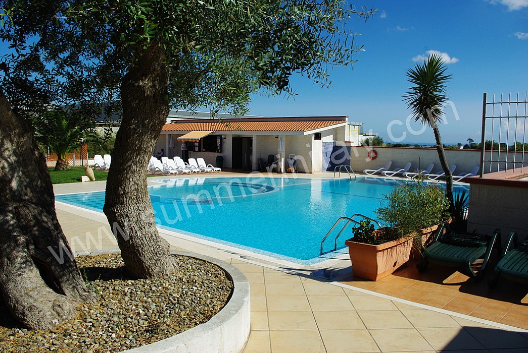 The swimming pool is 10 meters (33 feet) large by 16 meters (52 feet) long. It is an infinity pool and has a cervical hydromassage shower. The area is equipped with a table, chairs, sun umbrellas, sun loungers and external showers. From the swimming pool you will have a pleasant view of the greenery and of the other buildings. You will share the pool with the other guests staying at the complex. The swimming pool is open from the beginning of June until the end of September.