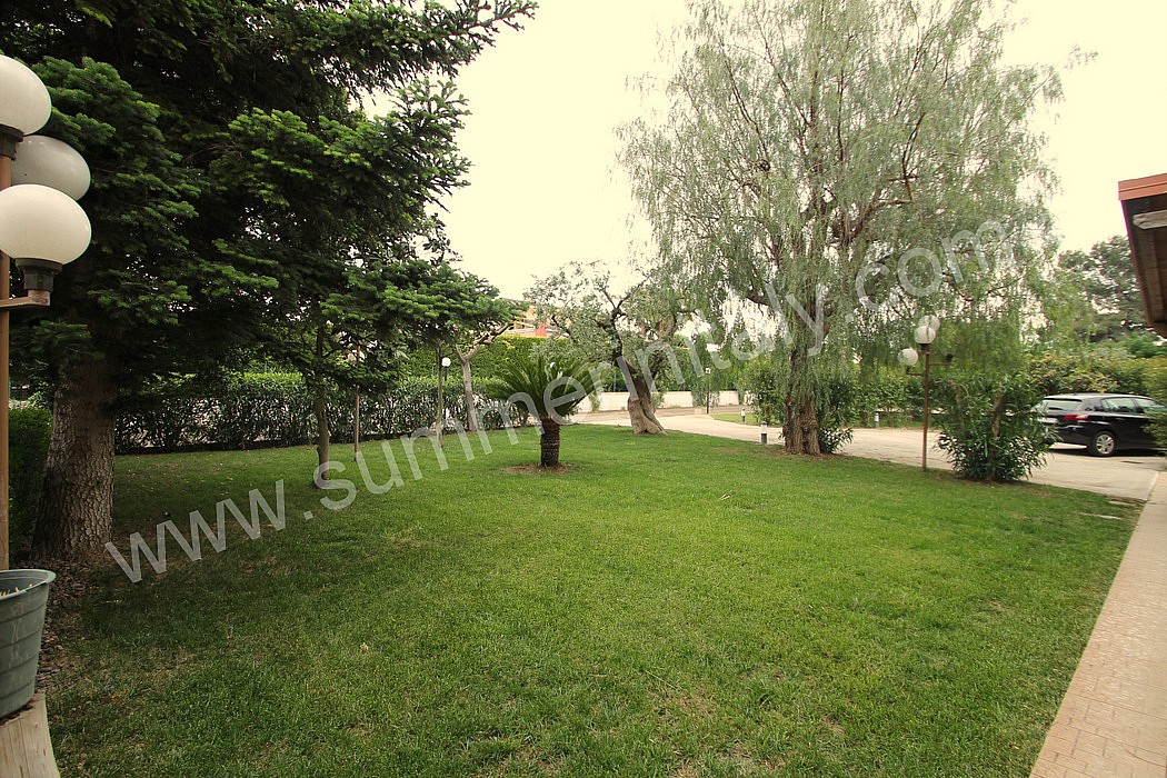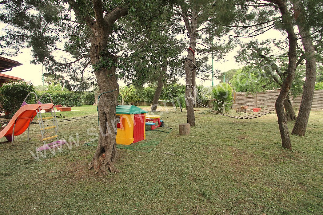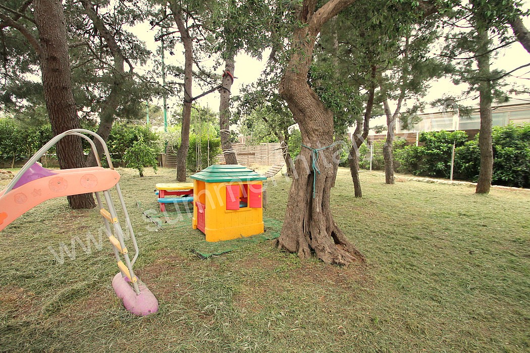 The garden is 5000 square meters (54000 square feet) large. It is partly shaded by trees. It is equipped with a table and chairs. In the garden you will find a children's playground. From the garden you will have a broad view of the greenery and of the other buildings. You will share the garden with the other guests staying at the complex.