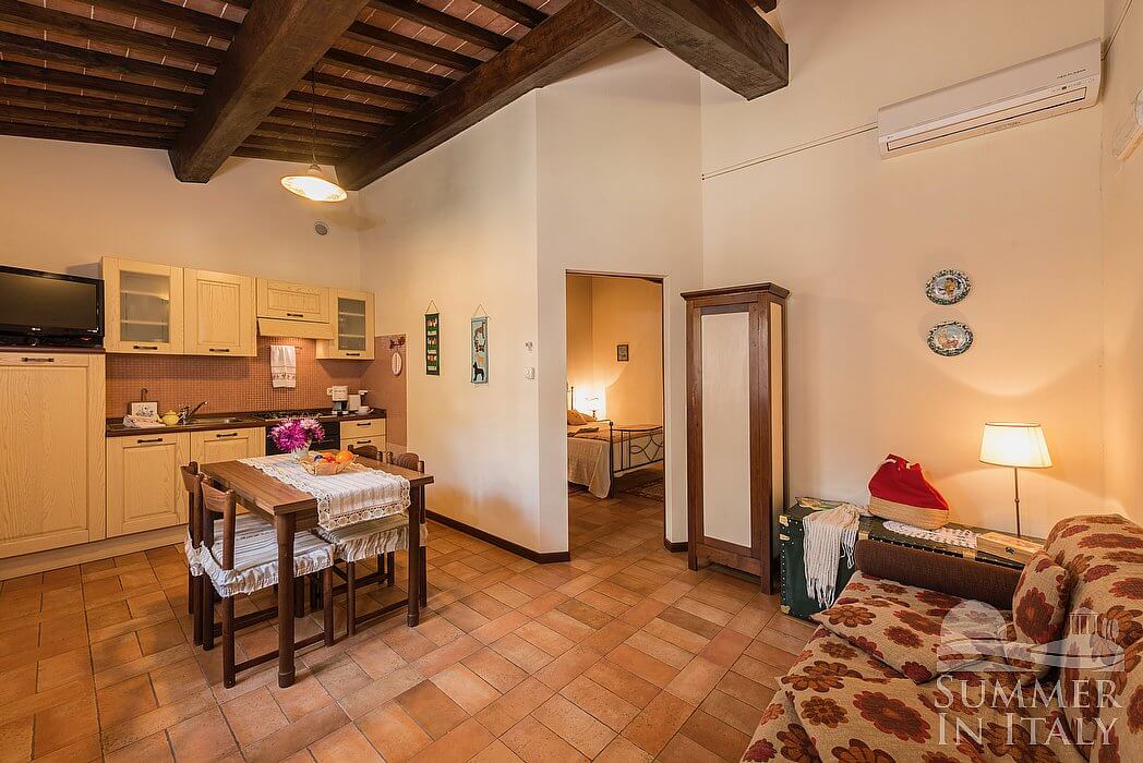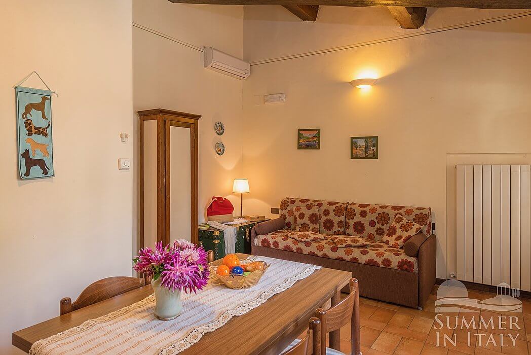 Casa Caprifoglio E is a characteristic and welcoming apartment that is part of an ancient country house surrounded by the greenery. It sleeps four people. From Casa Caprifoglio E you will have a nice view of the greenery and of the surrounding countryside. Casa Caprifoglio E is 40 square meters (430 square feet). It features a shared swimming pool, a shared terrace, a private patio, a shared garden, air conditioning (please read description below to check in which rooms the units are installed), winter heating and WI-FI Internet access.