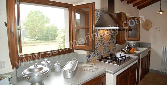 The complex is made up of five holiday apartments that once belonged to a farmhouse dating back to the XVI century. It is situated near the banks of a small torrent that marks the border between Umbria and Tuscany.