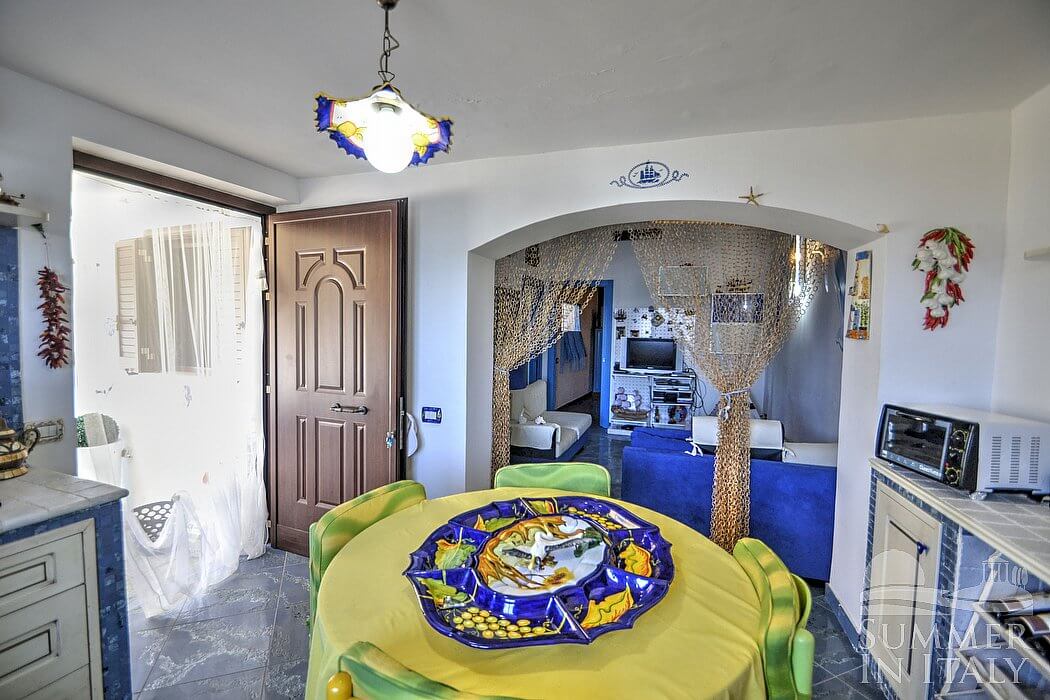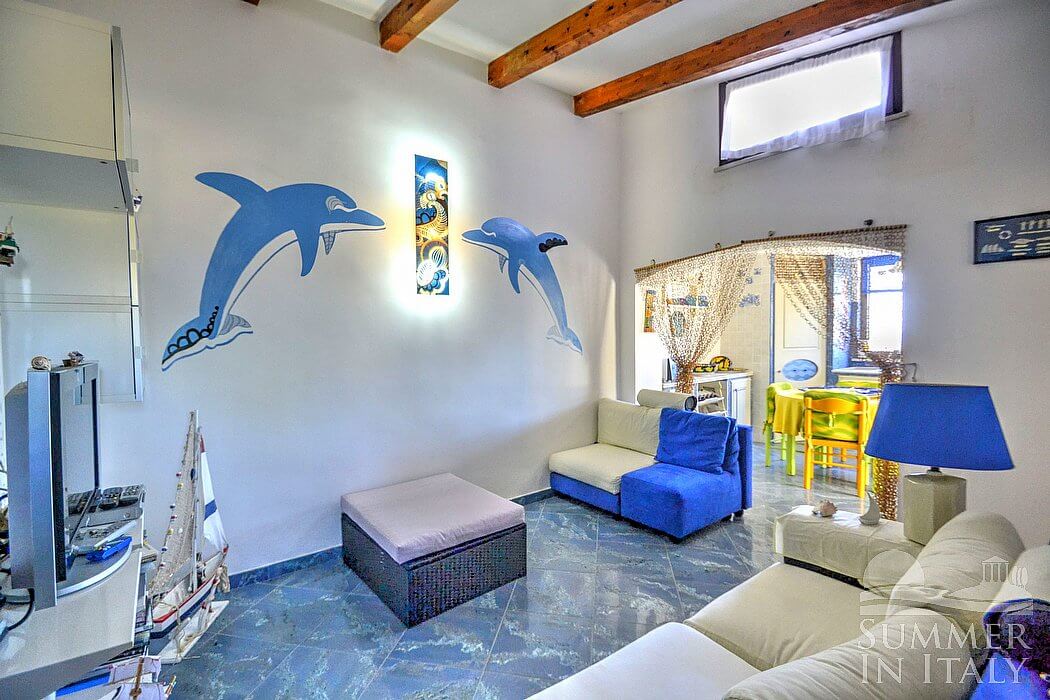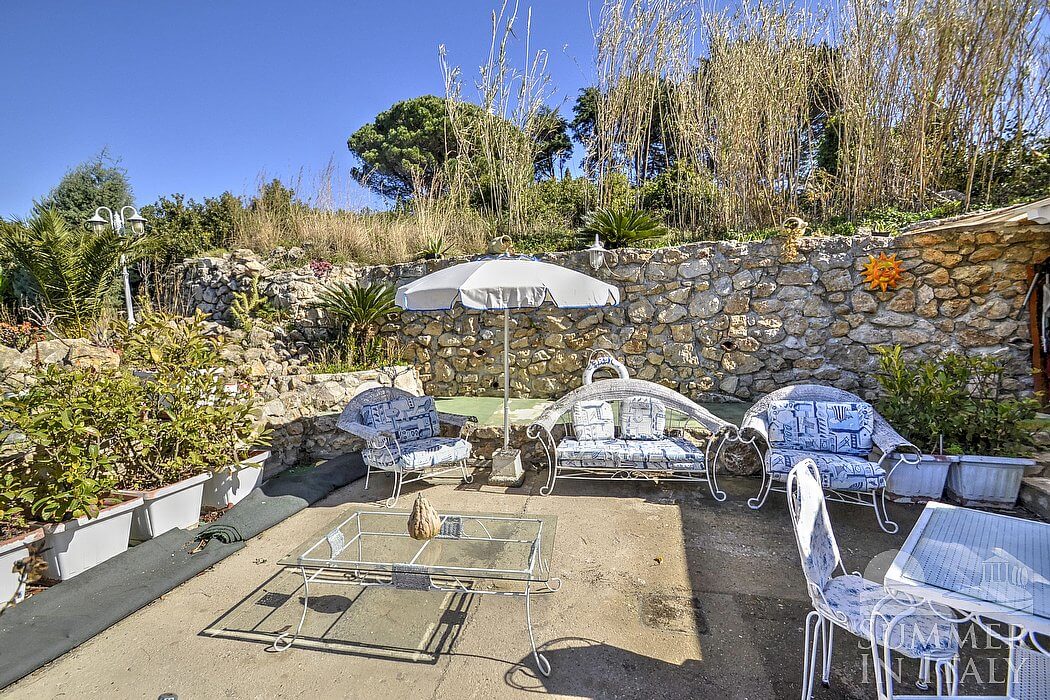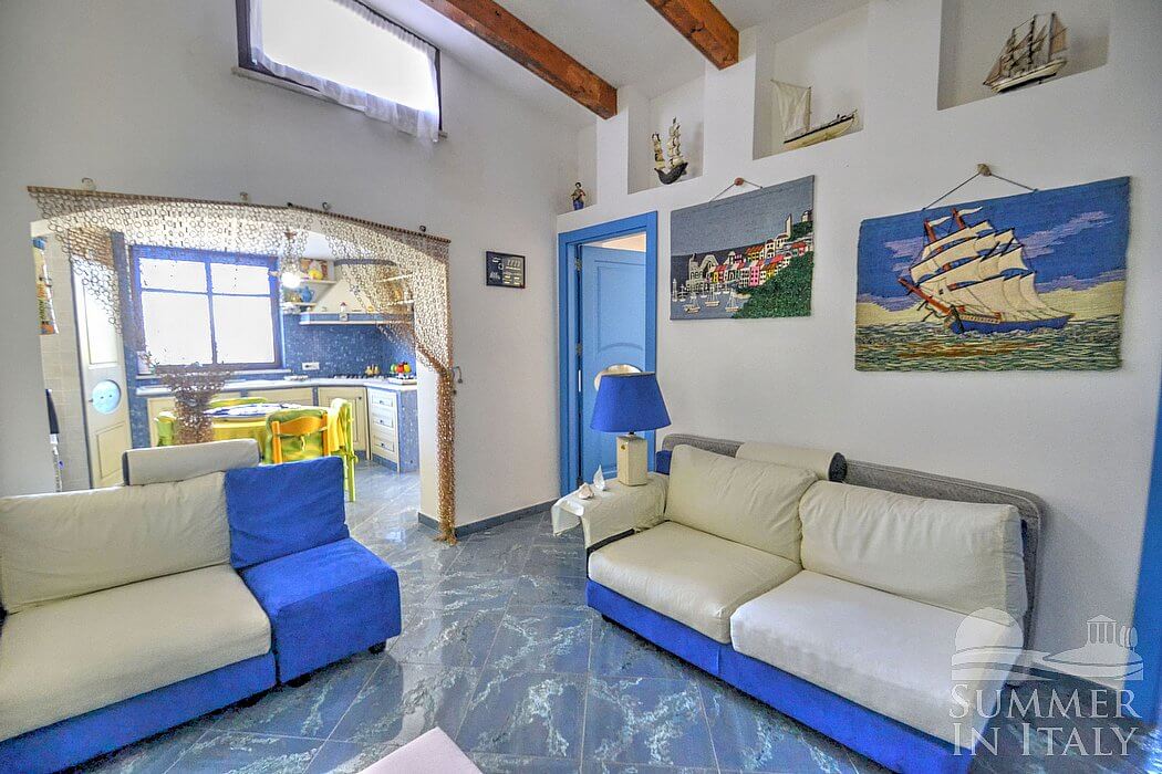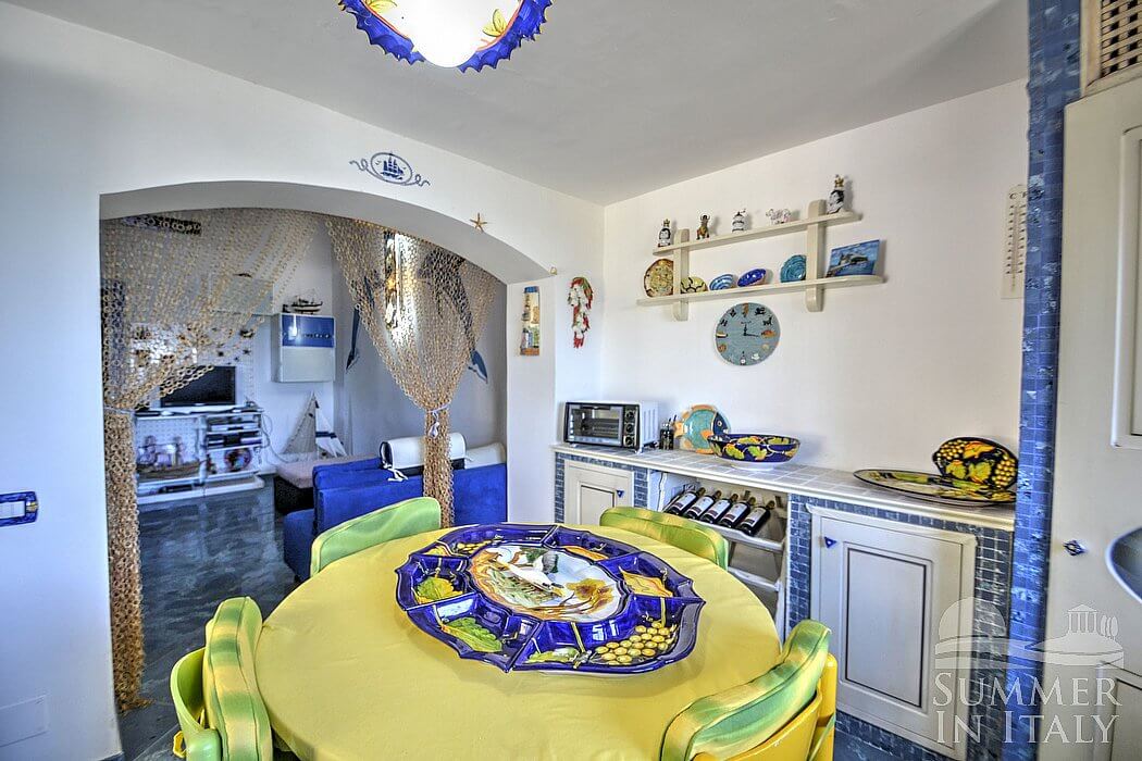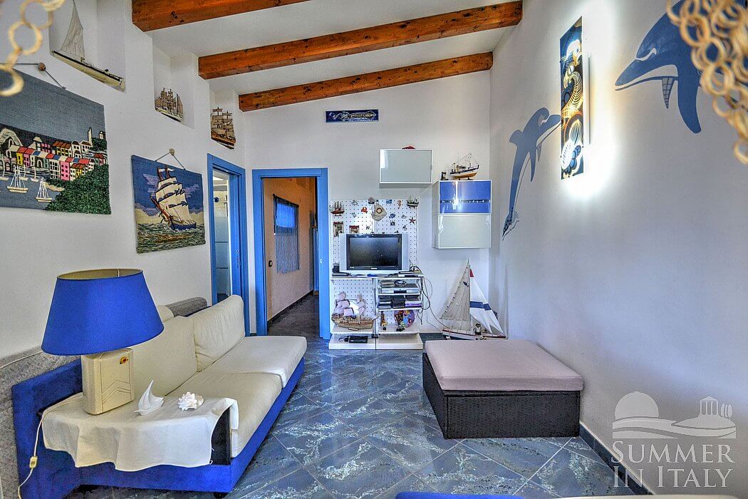 Casa Dadina is a bright and sunny independent house situated at a short distance from the beach. It sleeps four people. From Casa Dadina you will enjoy a spectacular view of the sea. Casa Dadina is 70 square meters (750 square feet). It features a private swimming pool, a panoramic private terrace with a view of the sea, a private garden and air conditioning (please read description below to check in which rooms the units are installed).