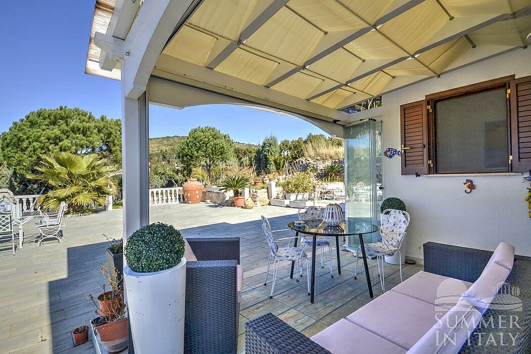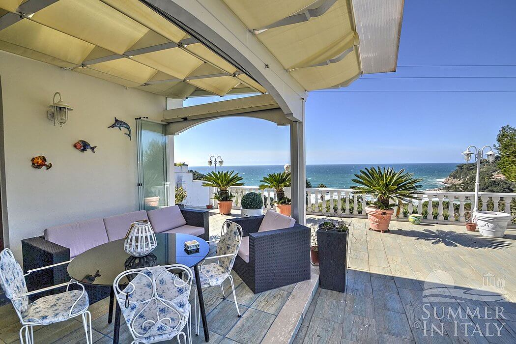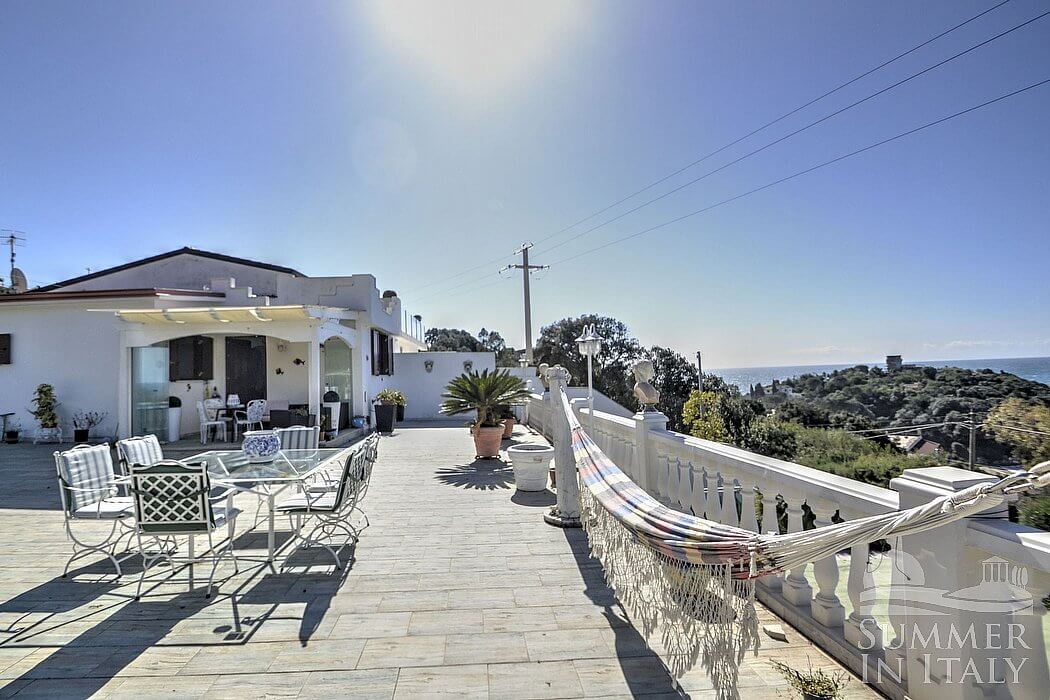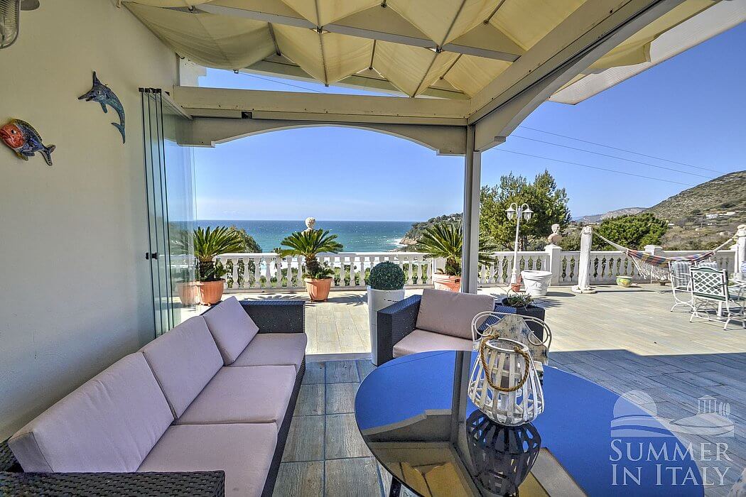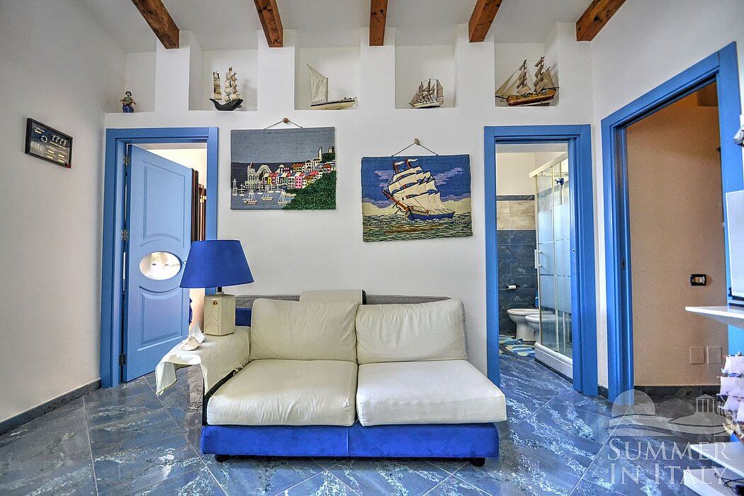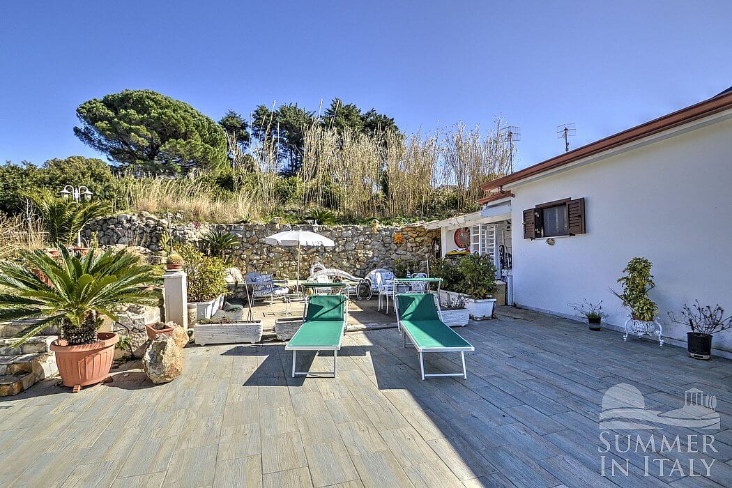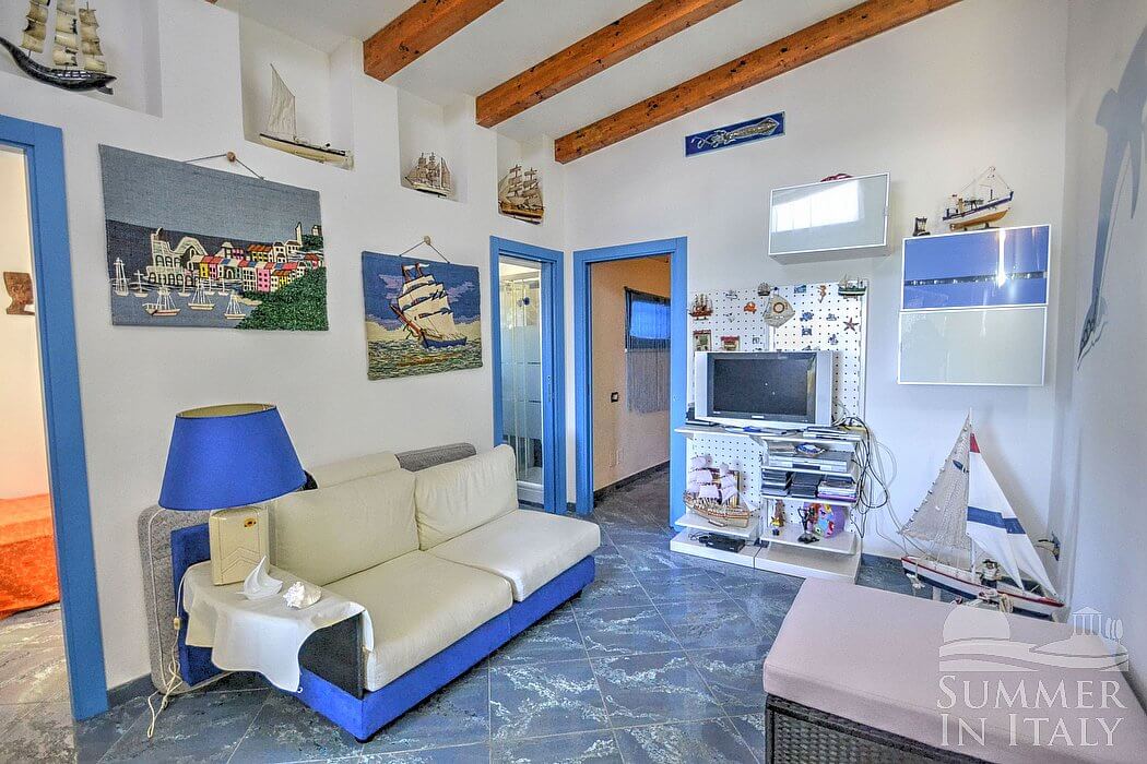Casa Dadina is a bright and sunny independent house situated at a short distance from the beach. It sleeps four people. From Casa Dadina you will enjoy a spectacular view of the sea. Casa Dadina is 70 square meters (750 square feet). It features a private swimming pool, a panoramic private terrace with a view of the sea, a private garden and air conditioning (please read description below to check in which rooms the units are installed).
