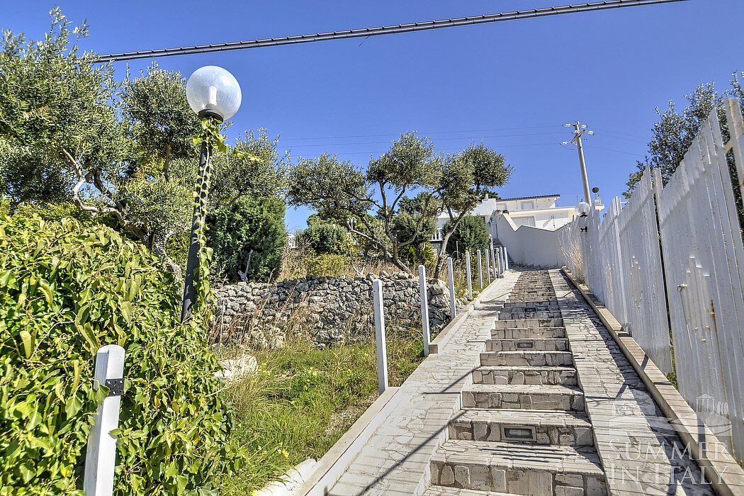 You will be roughly 3 km (1.9 miles) from the center of Gaeta, where you will find restaurants and shops. You will find the closest beach at roughly 600 meters (660 yards). You will reach Casa Dadina walking past a main entrance gate and going up a stairway which consists of approximately 100 steps.