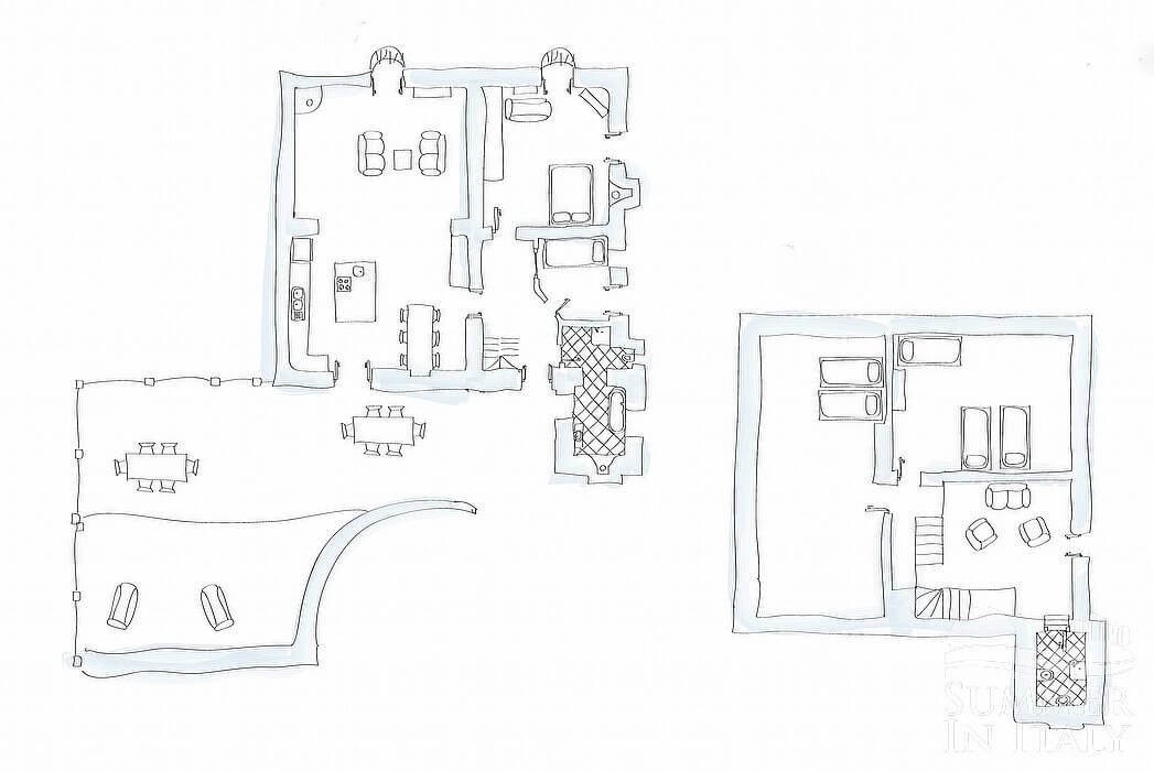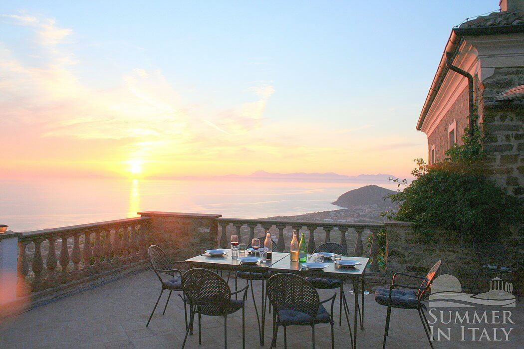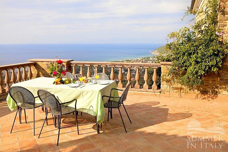 Casa Elmira is a spacious three-story apartment that is part of a villa in a quiet position, located on a hillside above the sea. It sleeps eight people. From Casa Elmira you will enjoy a gorgeous view of the sea and of Santa Maria di Castellabate and of the gulf of Salerno far in the horizon. Casa Elmira is 180 square meters (1940 square feet). It features a panoramic private terrace with a view of the sea, a private patio, winter heating and WI-FI Internet access.