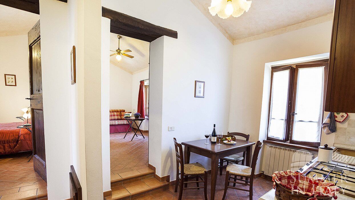 Casa Gioele C is a welcoming apartment situated in a quiet location, a few minutes from the town center. It sleeps four people. From Casa Gioele C you will enjoy a lovely view of the Umbrian hills and of the greenery. Casa Gioele C is 45 square meters (485 square feet). It features a shared swimming pool, a shared garden, winter heating and WI-FI Internet access.