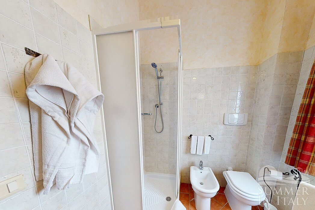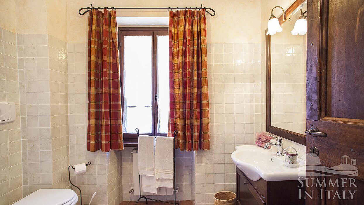 The swimming pool is 12 meters (39 feet) large by 20 meters (65 feet) long, from 60 centimeters (2 feet) to 1.80 meters (6 feet) deep. It is filled with sea water. The area is equipped with sun umbrellas, sun loungers and an external shower. From the swimming pool you will enjoy a charming view of the Umbrian hills and of Umbertide. You will share the pool with guests staying at 4 other apartments. The swimming pool is open from mid-May until mid-September.
