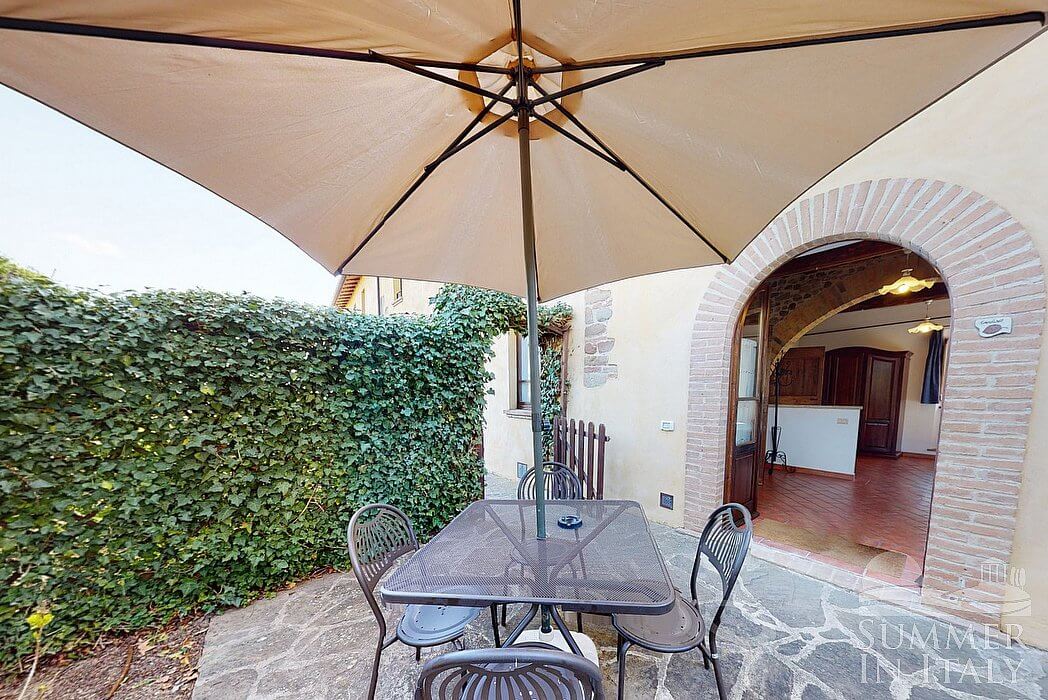 The garden is 900 square meters (9700 square feet). It is partly shaded by tall trees. It is equipped with a table, chairs and a sun umbrella. In the garden you will find a children's playground. Here you will also find a brickwork barbecue. From the garden you will enjoy a spellbinding view of the Umbrian hills and of Umbertide. You will share the garden with the other guests staying at the complex.