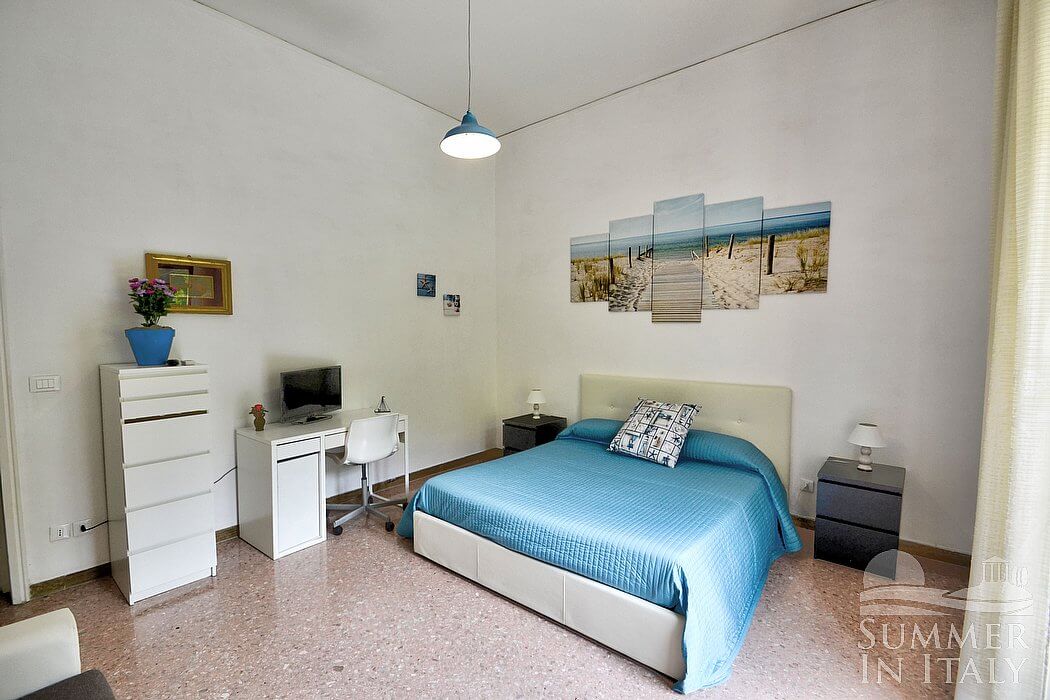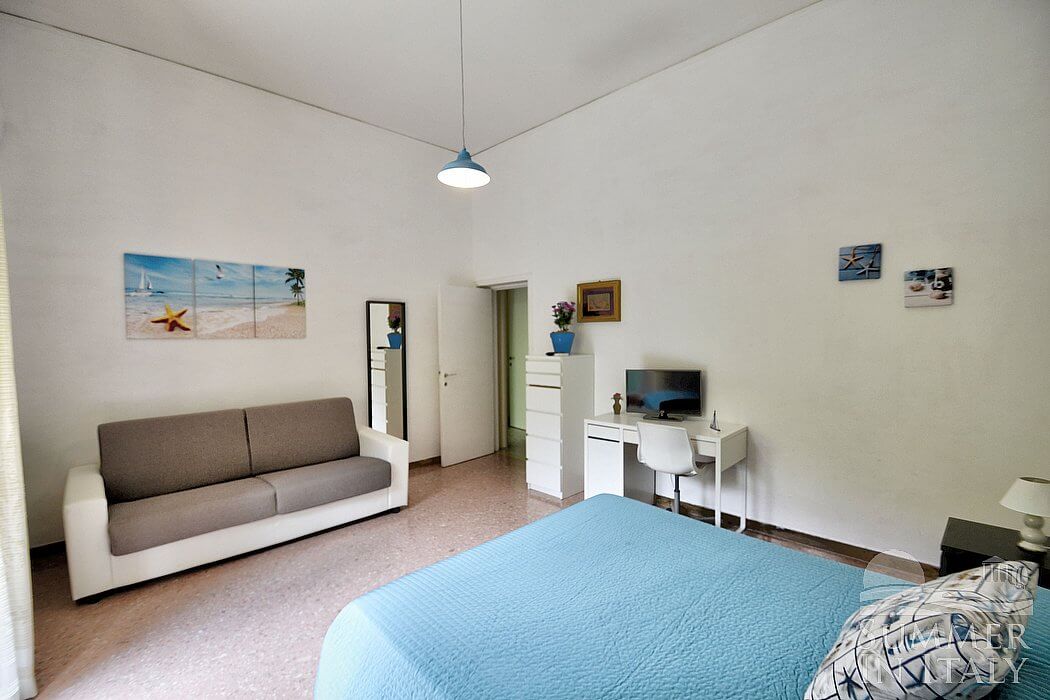 You will be able to enter the bedroom from the through a corridor. The bedroom has a matrimonial bed (160 cm/62 inches, wider than a queen-size bed). The furnishings include a divan that unfolds into a double bed and a desk. In this room you will find a television (local channels). From the bedroom you will be able to enter a balcony through a French door. The bedroom is equipped with an air conditioning/heating unit.