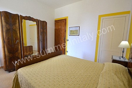 You will be able to enter the first bedroom from the living room. The bedroom has a traditional wooden matrimonial bed (160 cm/62 inches, wider than a queen-size bed). The room has a window with a view of the surrounding houses. This bedroom has an en-suite bathroom, equipped with a washbasin and a toilet.