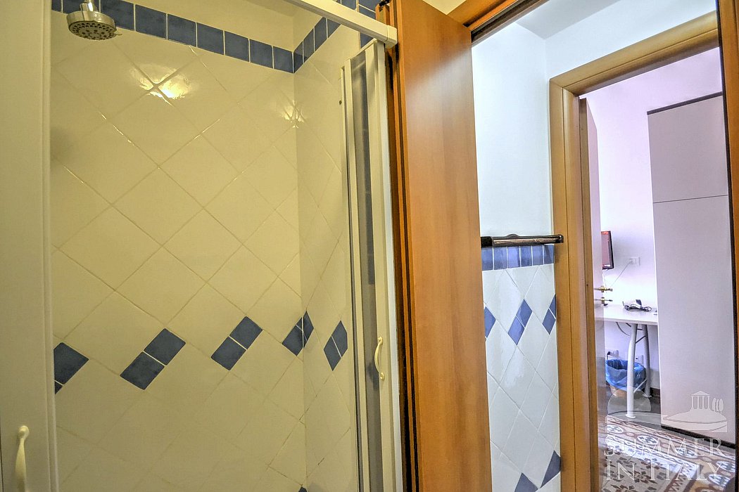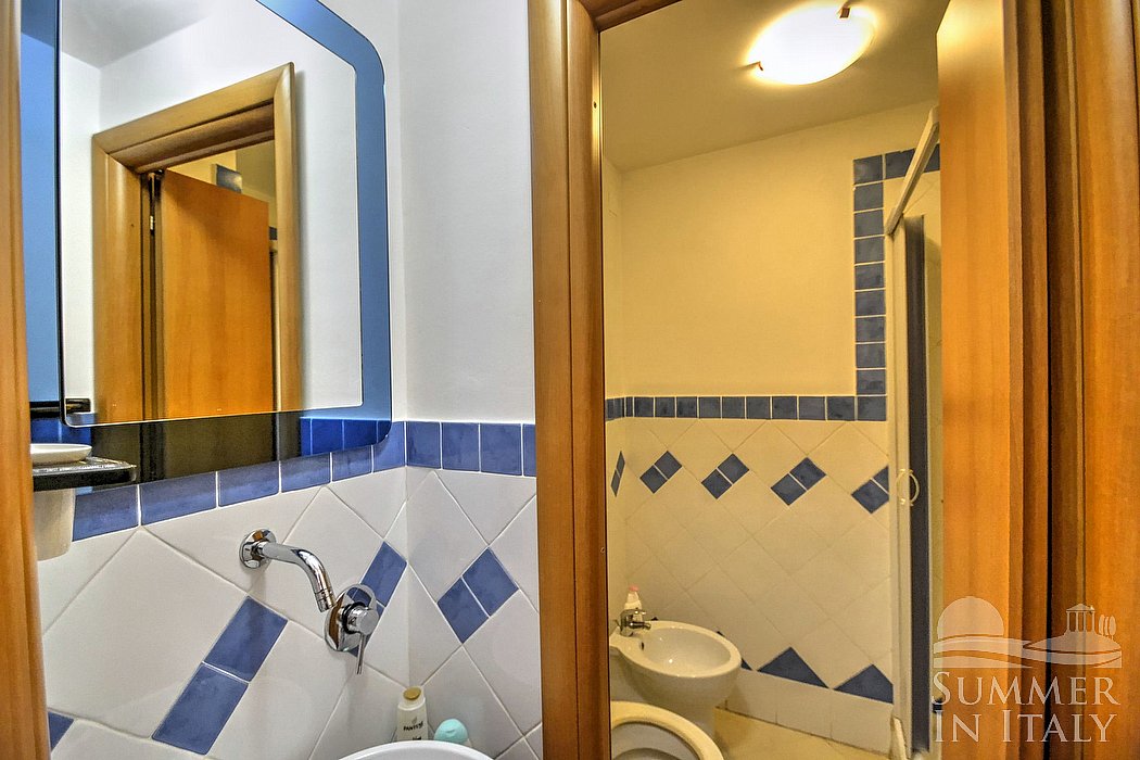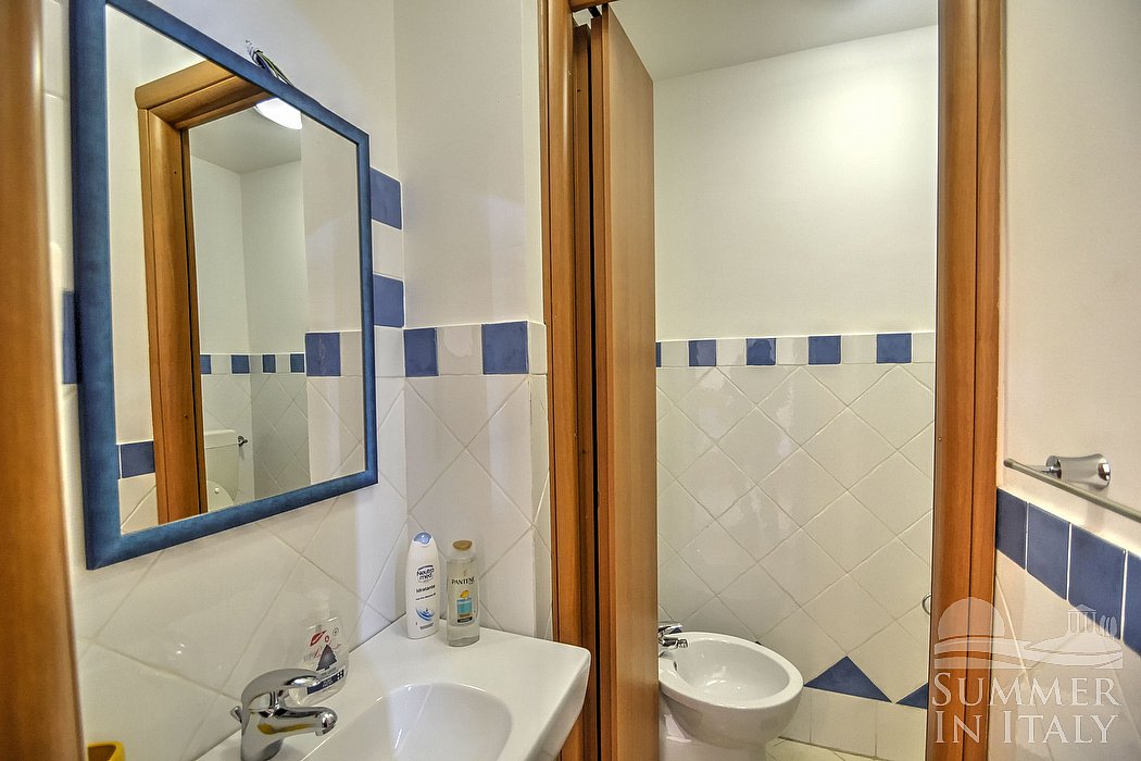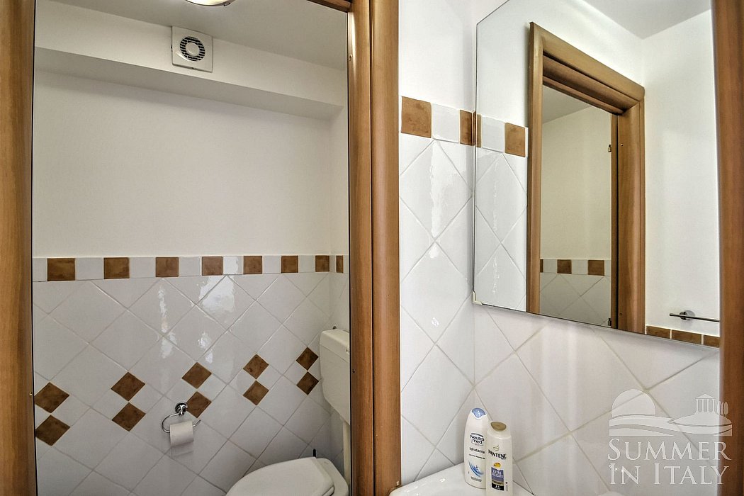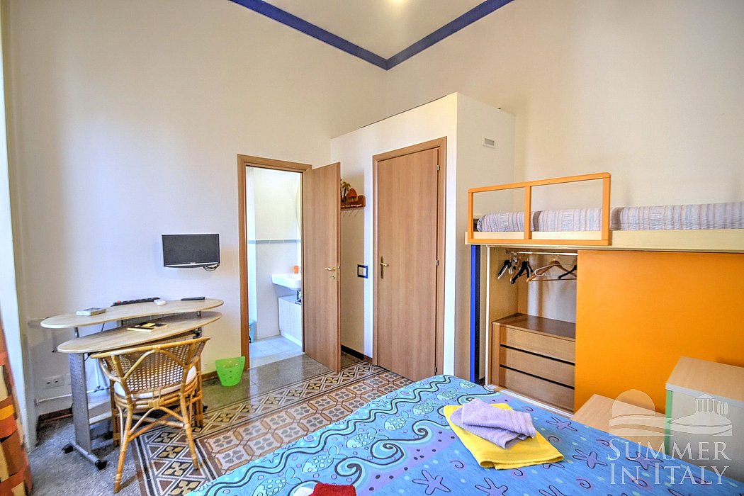 You will be able to enter the fourth bedroom through a corridor. The bedroom has a matrimonial bed (160 cm/62 inches, wider than a queen-size bed) and a twin bed (80 cm/32 inches). In this room you will find a satellite television (local channels). From the bedroom you will be able to enter a balcony through a French door. The bedroom is equipped with an air conditioning/heating unit. This bedroom has an en-suite bathroom, equipped with a washbasin, a toilet, a fully enclosed shower and a hairdryer.