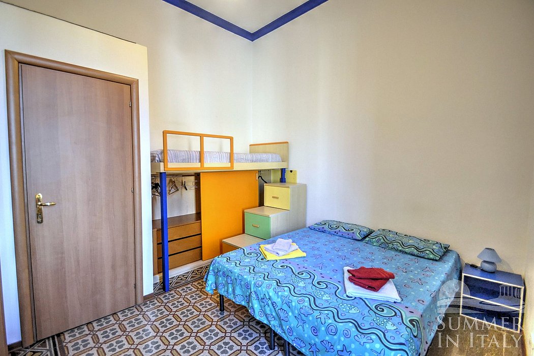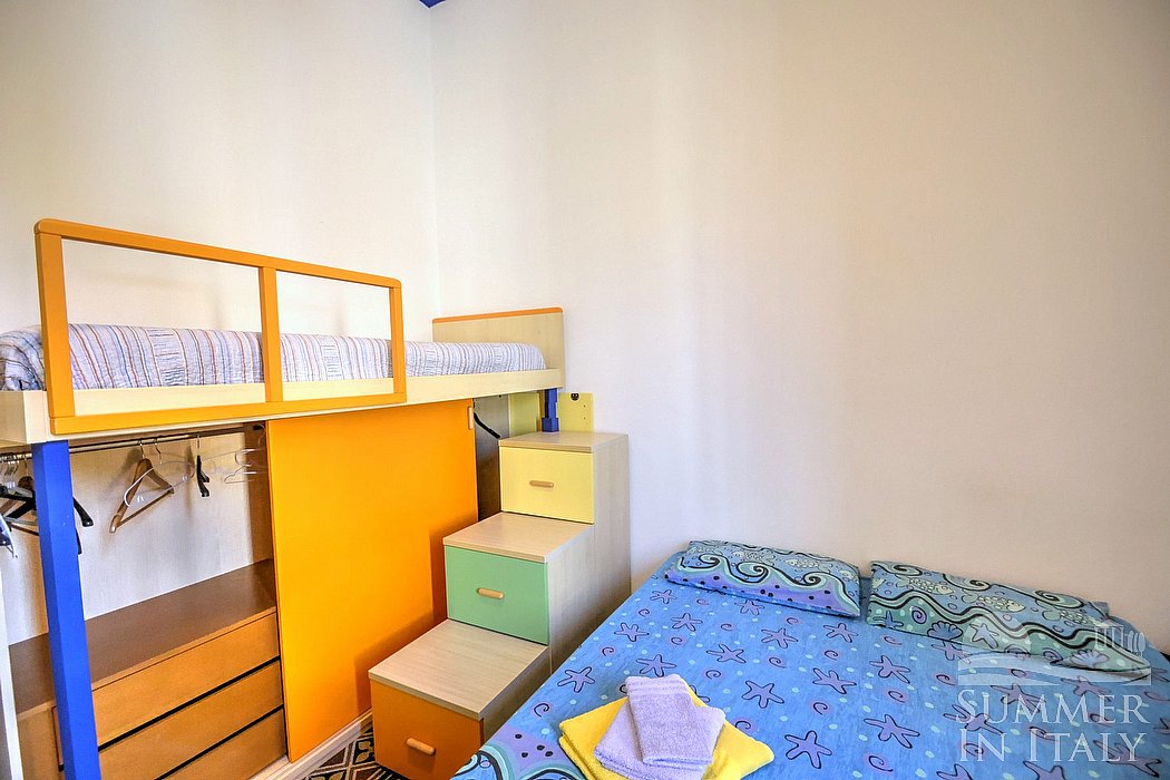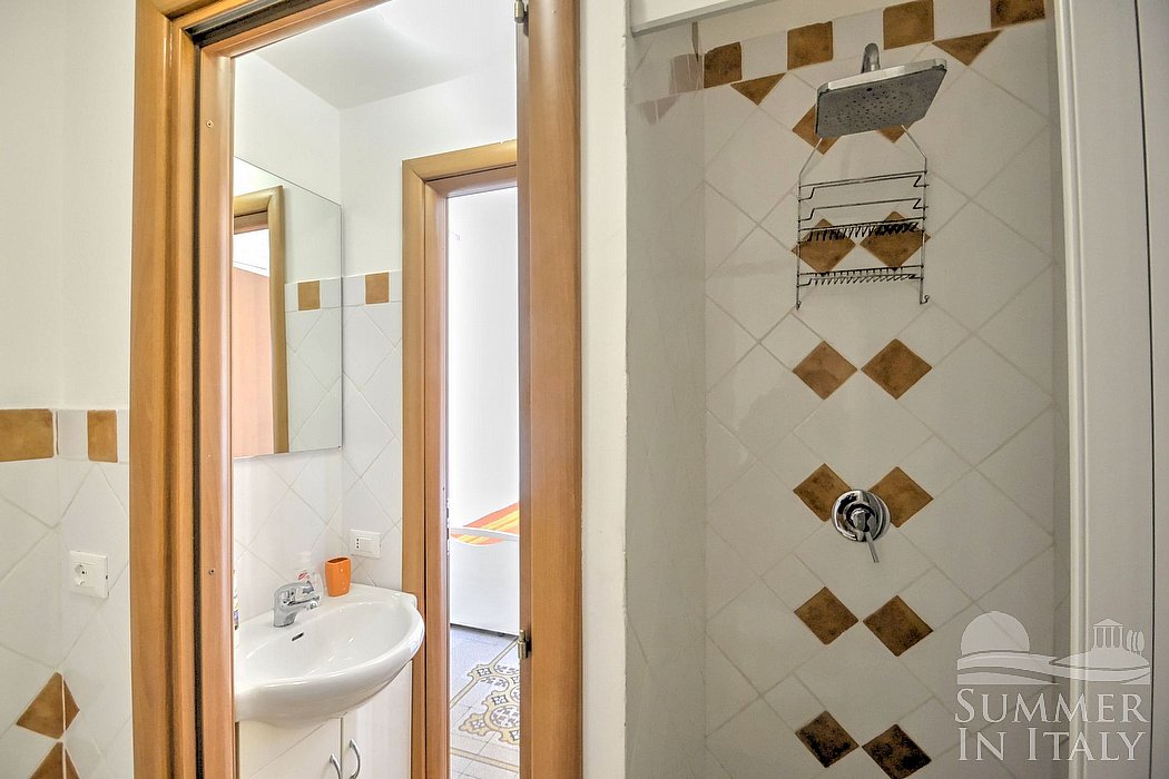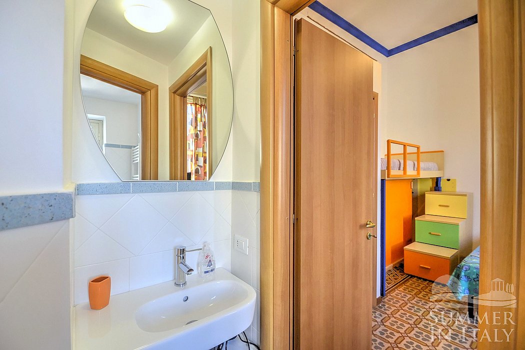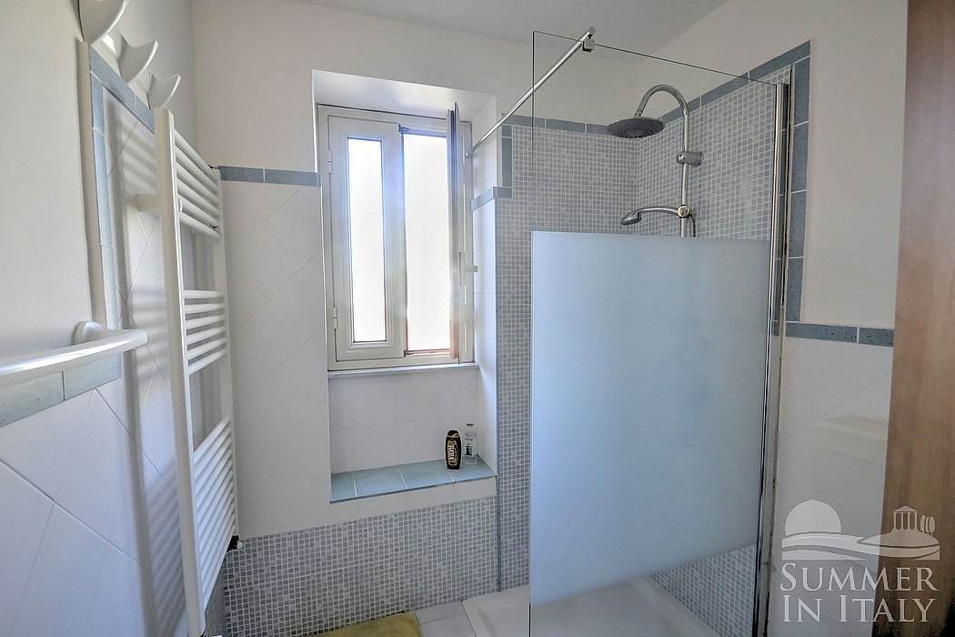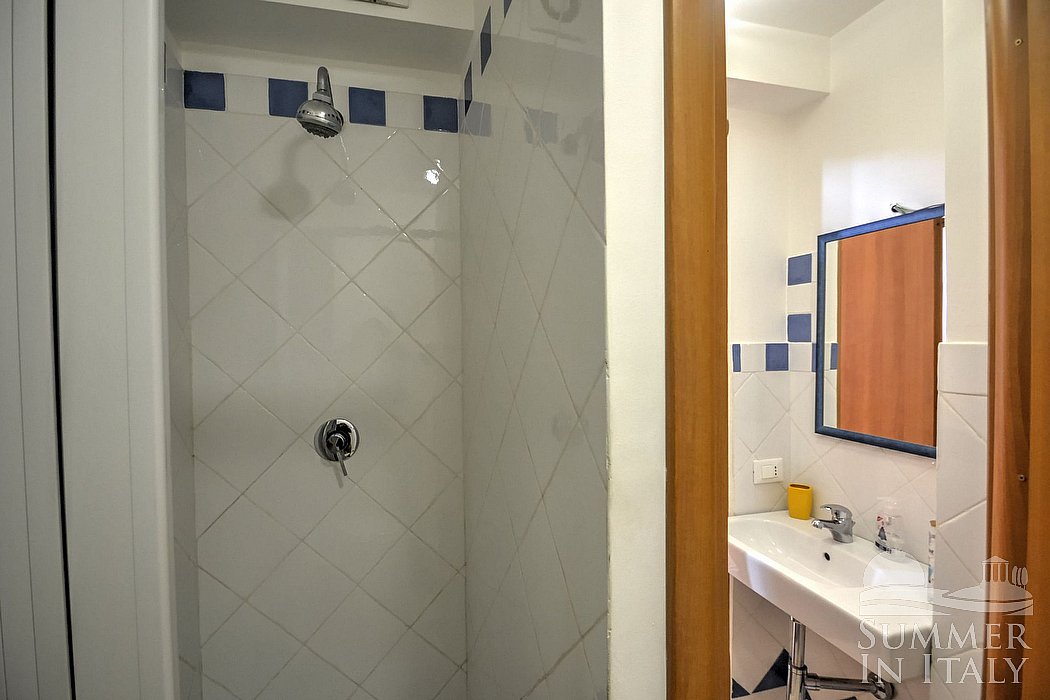 You will be able to enter the fourth bedroom through a corridor. The bedroom has a matrimonial bed (160 cm/62 inches, wider than a queen-size bed) and a twin bed (80 cm/32 inches). In this room you will find a satellite television (local channels). From the bedroom you will be able to enter a balcony through a French door. The bedroom is equipped with an air conditioning/heating unit. This bedroom has an en-suite bathroom, equipped with a washbasin, a toilet, a fully enclosed shower and a hairdryer.