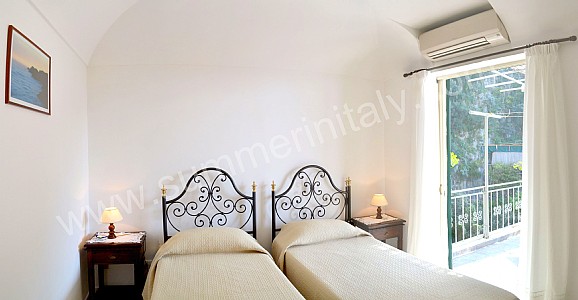 You will be able to enter the bedroom from the corridor. It has two twin beds (80 cm/32 inches), that can be pushed together into a matrimonial bed if requested (please contact our staff in advance to make arrangements). The furnishings include an armchair. From the bedroom you will be able to enter the terrace with a view of the fjord and of the sea through a French door. The bedroom is equipped with an air conditioning/heating unit.