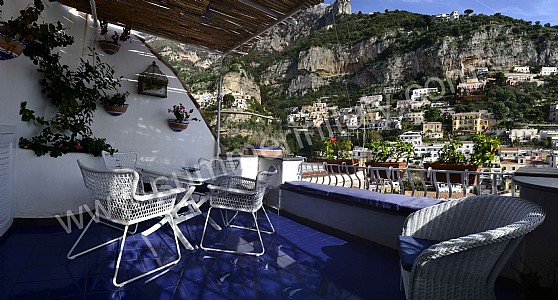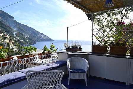 The terrace is 15 square meters (160 square feet) large. It is shaded by a pergola with a characteristic bamboo roof. It is equipped with a table and chairs. Here you will also find a portable barbecue. From the terrace you will enjoy a marvelous view of the sea, of Positano and of the Amalfi Coast.