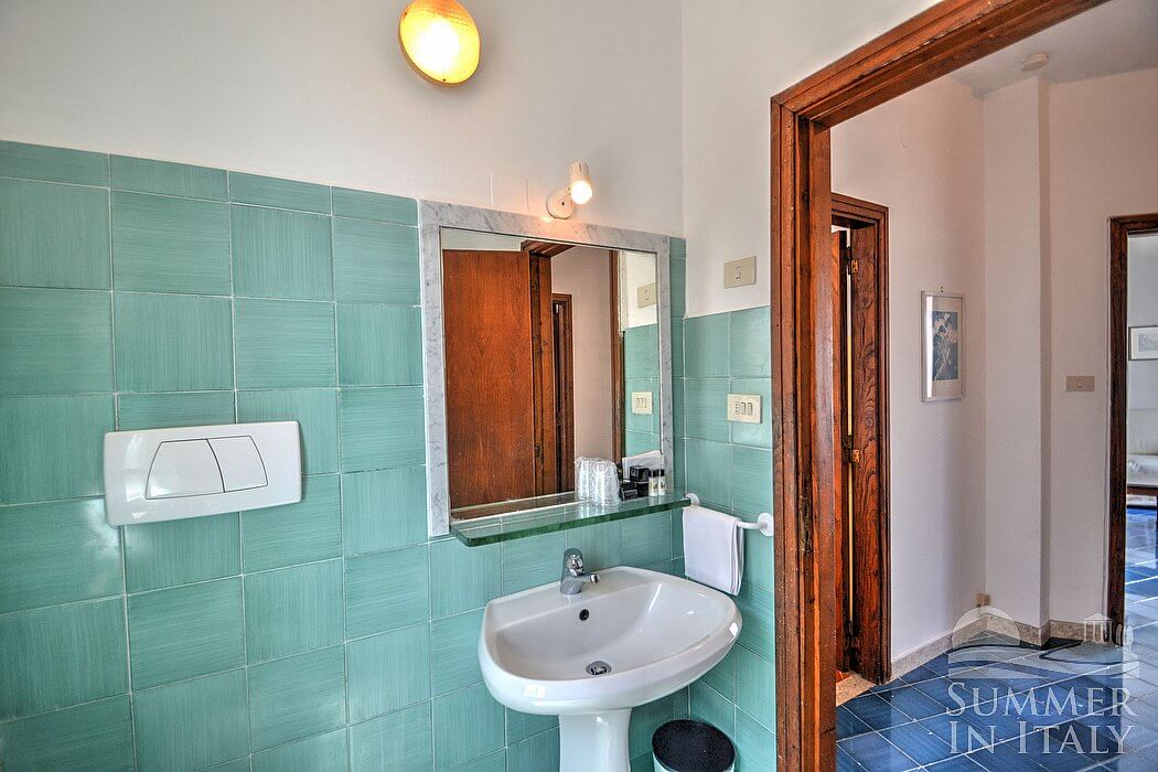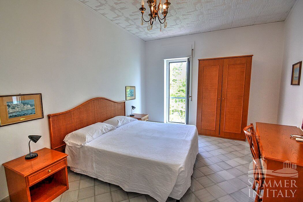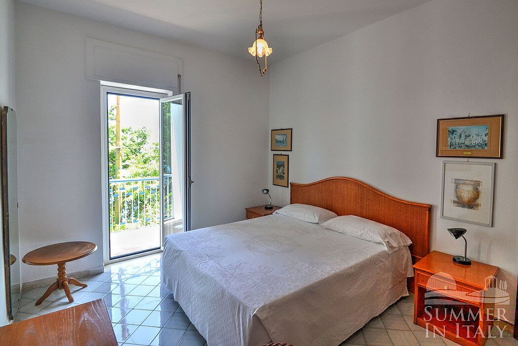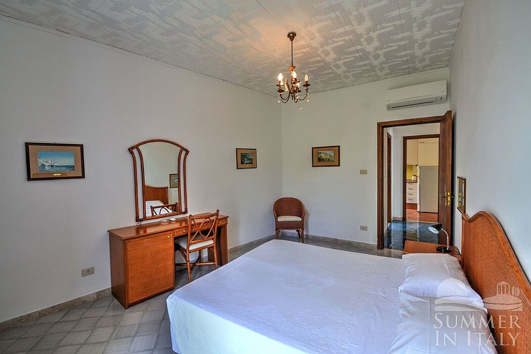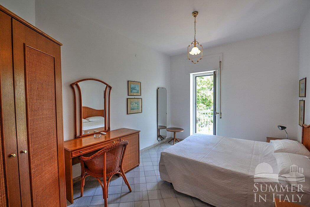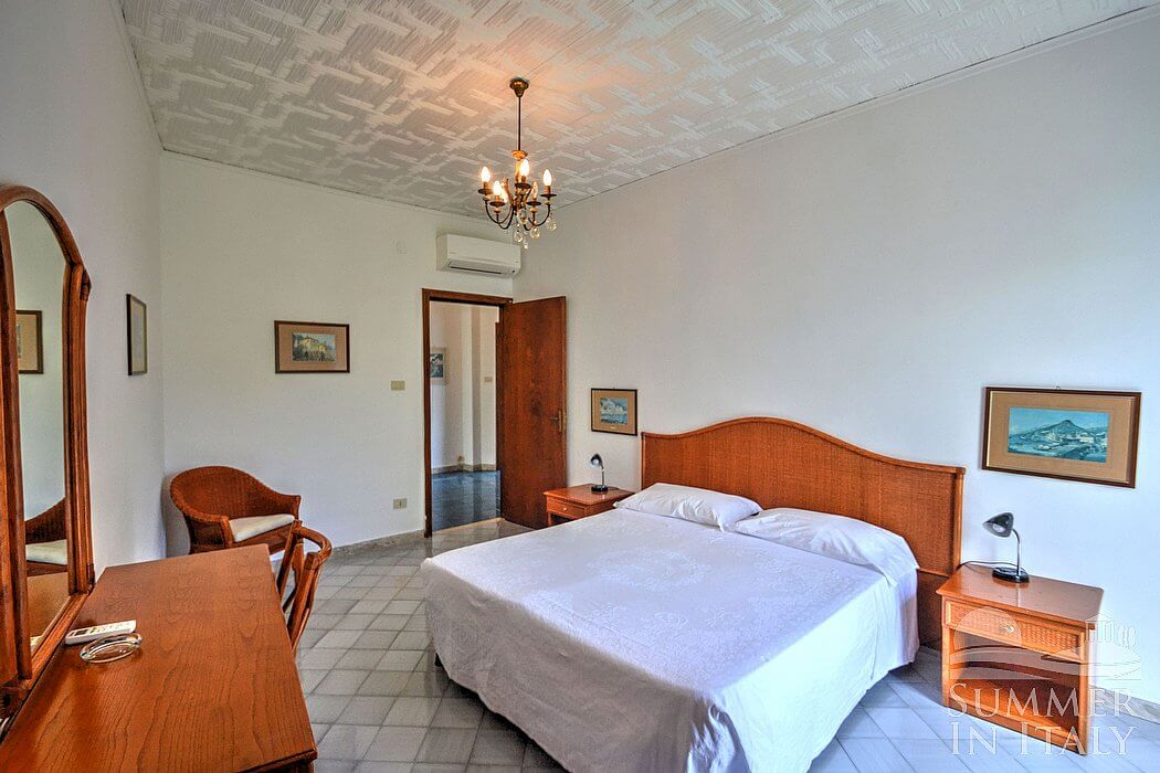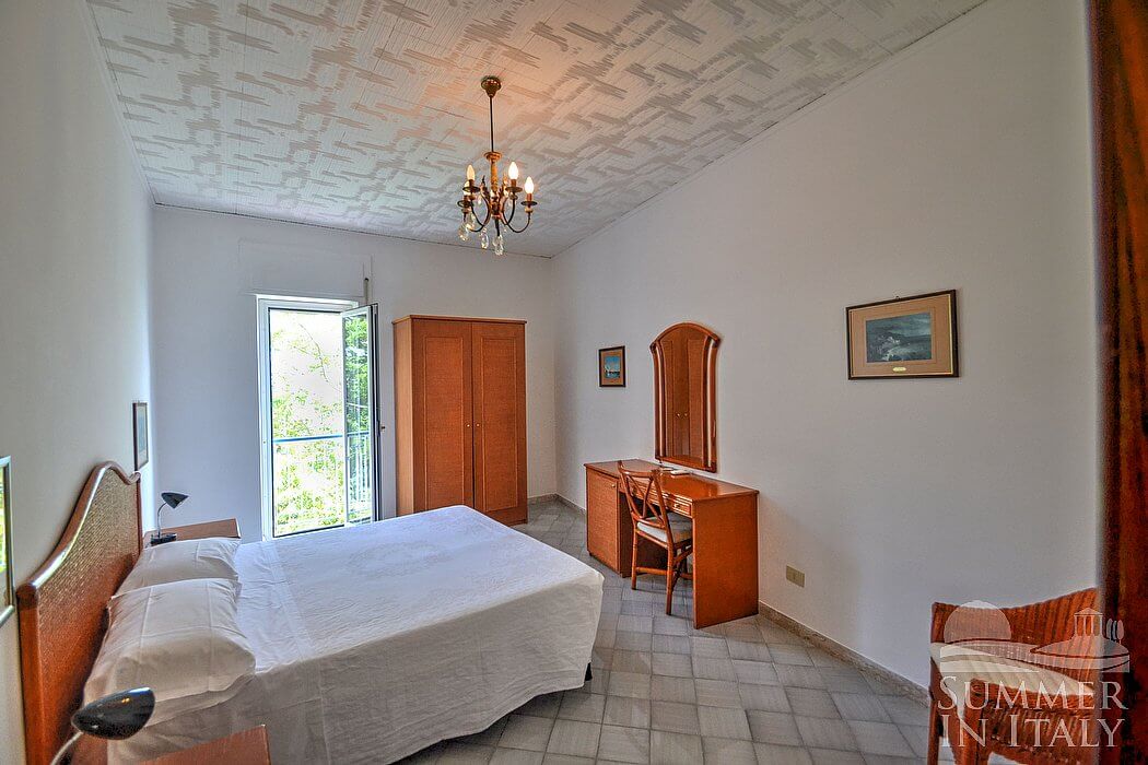 You will be able to enter the first bedroom through an access area. The bedroom has a matrimonial bed (160 cm/63 inches, wider than a queen-size bed), that can be split into twins if requested (please contact our staff in advance to make arrangements). The furnishings include a bedroom chair and a desk. From the bedroom you will be able to enter the terrace with a view of the sea and of the coast of Amalfi through a French door. The bedroom is equipped with an air conditioning/heating unit.