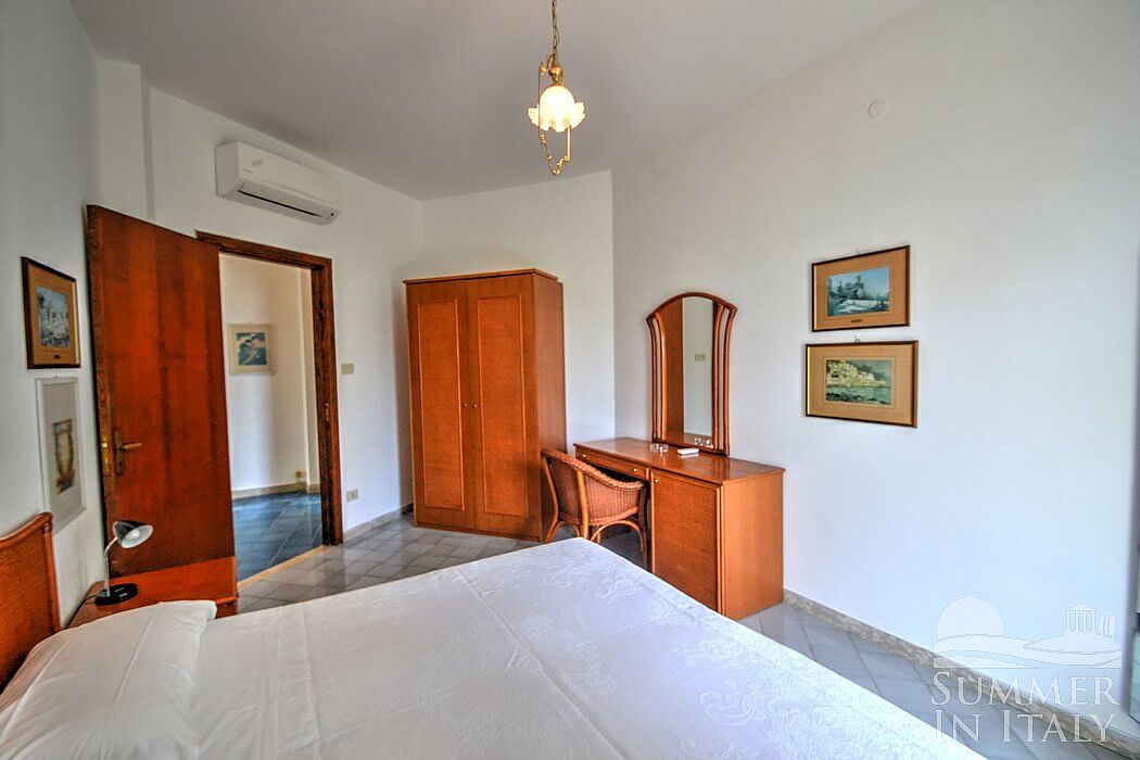 You will be able to enter the second bedroom through an access area. The bedroom has a matrimonial bed (160 cm/63 inches, wider than a queen-size bed), that can be split into twins if requested (please contact our staff in advance to make arrangements). The furnishings include a bedroom chair and a desk. From the bedroom you will be able to enter a small terrace through a French door. The bedroom is equipped with an air conditioning/heating unit.