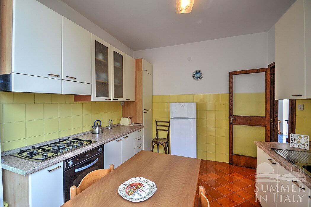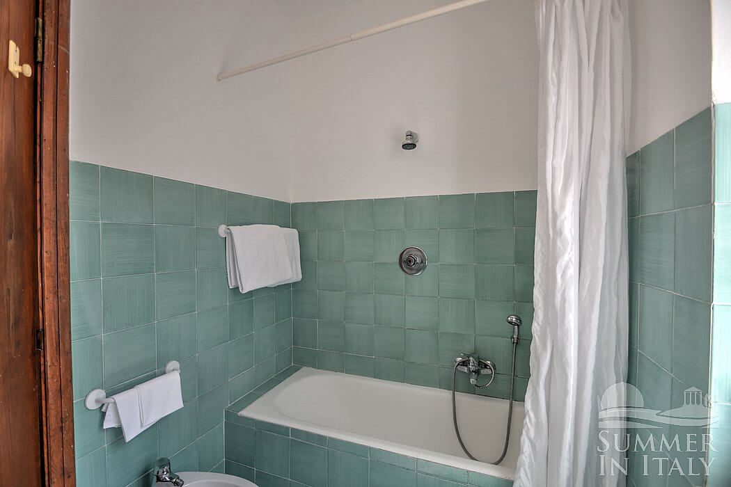 You will be able to enter the kitchen through an access area. It is equipped with a five-burner gas cooker, an electric oven, a refrigerator with freezer and an Italian-style coffee-maker. From the kitchen a French door will take you to the alleyway at the rear of the house. The room also has a window.