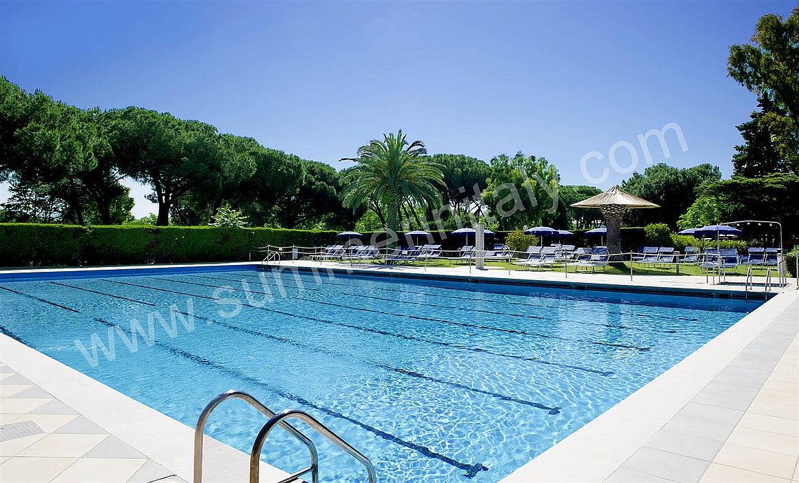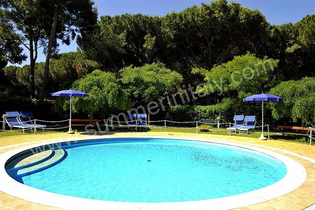 The swimming pool is 12 meters (39 feet) large by 25 meters (82 feet) long. The area is equipped with tables, chairs, sun umbrellas, sun loungers and an external shower. From the swimming pool you will enjoy a spellbinding view of the greenery and of the garden. You will share the pool with the other guests staying at the complex. The swimming pool is open from mid-April until the beginning of October.