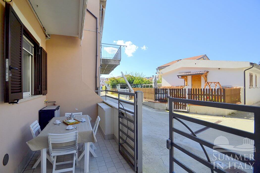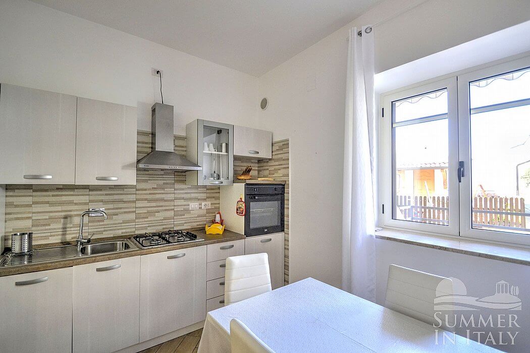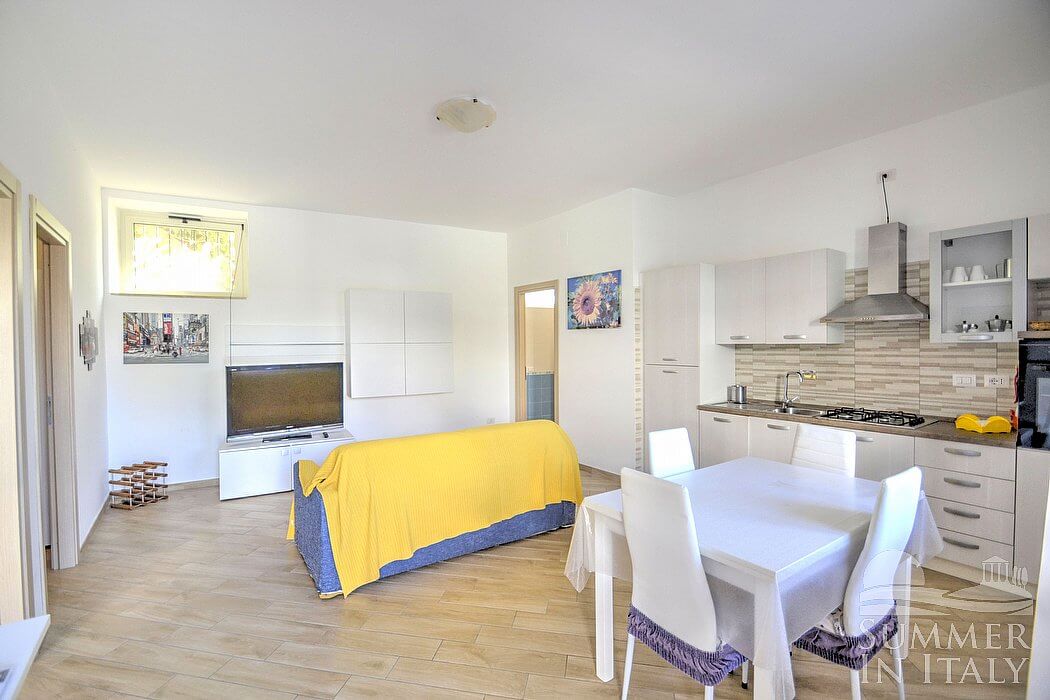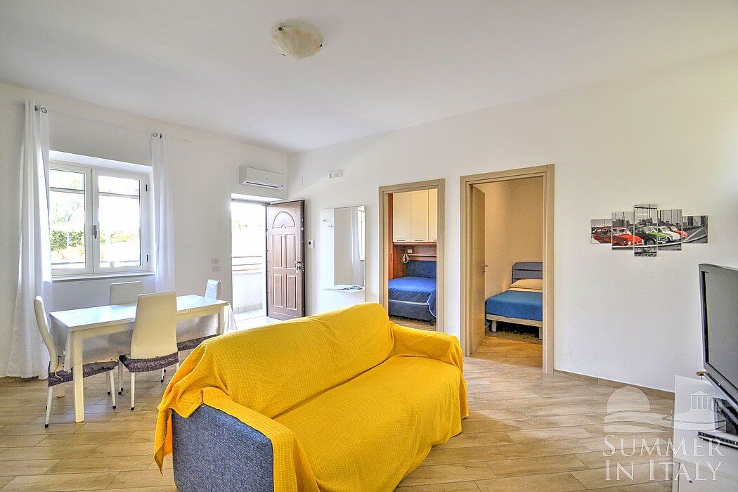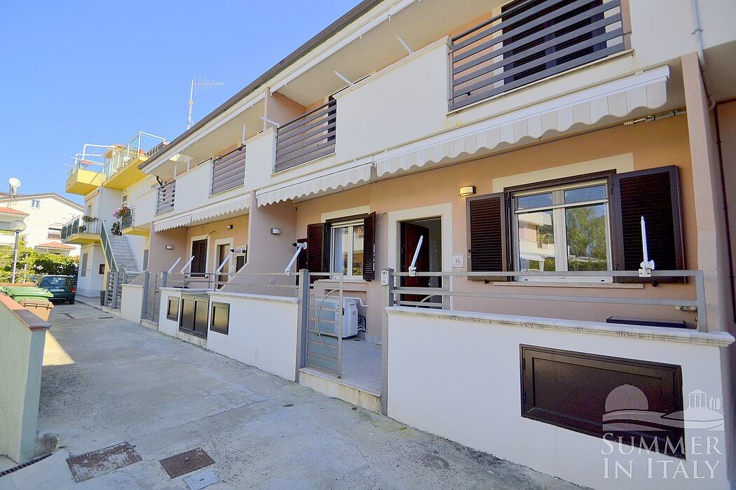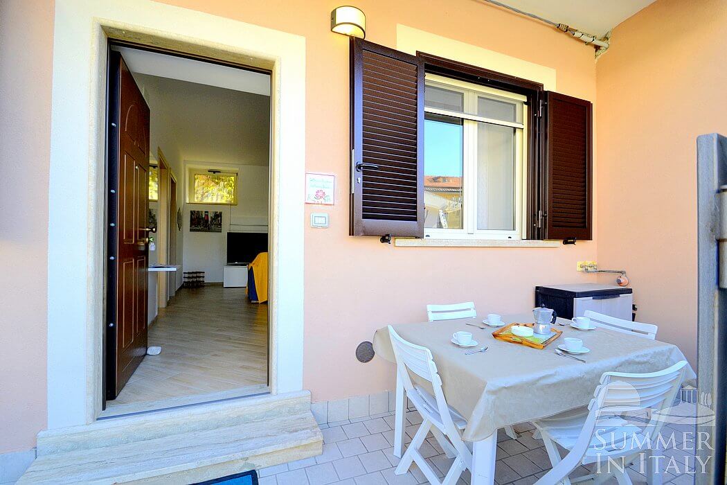 Casa Pesca D is a welcoming townhouse situated at a few steps from a sandy beach. It sleeps six people. From Casa Pesca D you will have a view of the surrounding buildings and, partially, of the sea at a distance. Casa Pesca D is 70 square meters (750 square feet). It features a private patio, air conditioning (please read description below to check in which rooms the units are installed), winter heating and WI-FI Internet access.