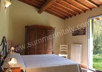 You will be able to enter the first bedroom from the living room. The bedroom has a wrought iron matrimonial bed (160 cm/62 inches, wider than a queen-size bed). An additional twin bed (80 cm/32 inches) is available (if requested in advance) to make it a triple room. From the bedroom you will be able to enter the garden through a French door.