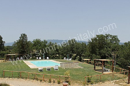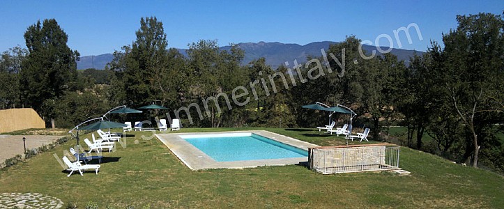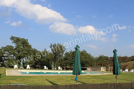 The swimming pool is 7 meters (23 feet) large by 14 meters (46 feet) long, 1.5 meters (5 feet) deep. The swimming pool area is equipped with a table, chairs, sun umbrellas, sun loungers and an external shower. From the swimming pool you will enjoy a gorgeous view of the valley and of the greenery. You will share the pool with the other guests staying at the complex. It is open from the beginning of May until the end of October.